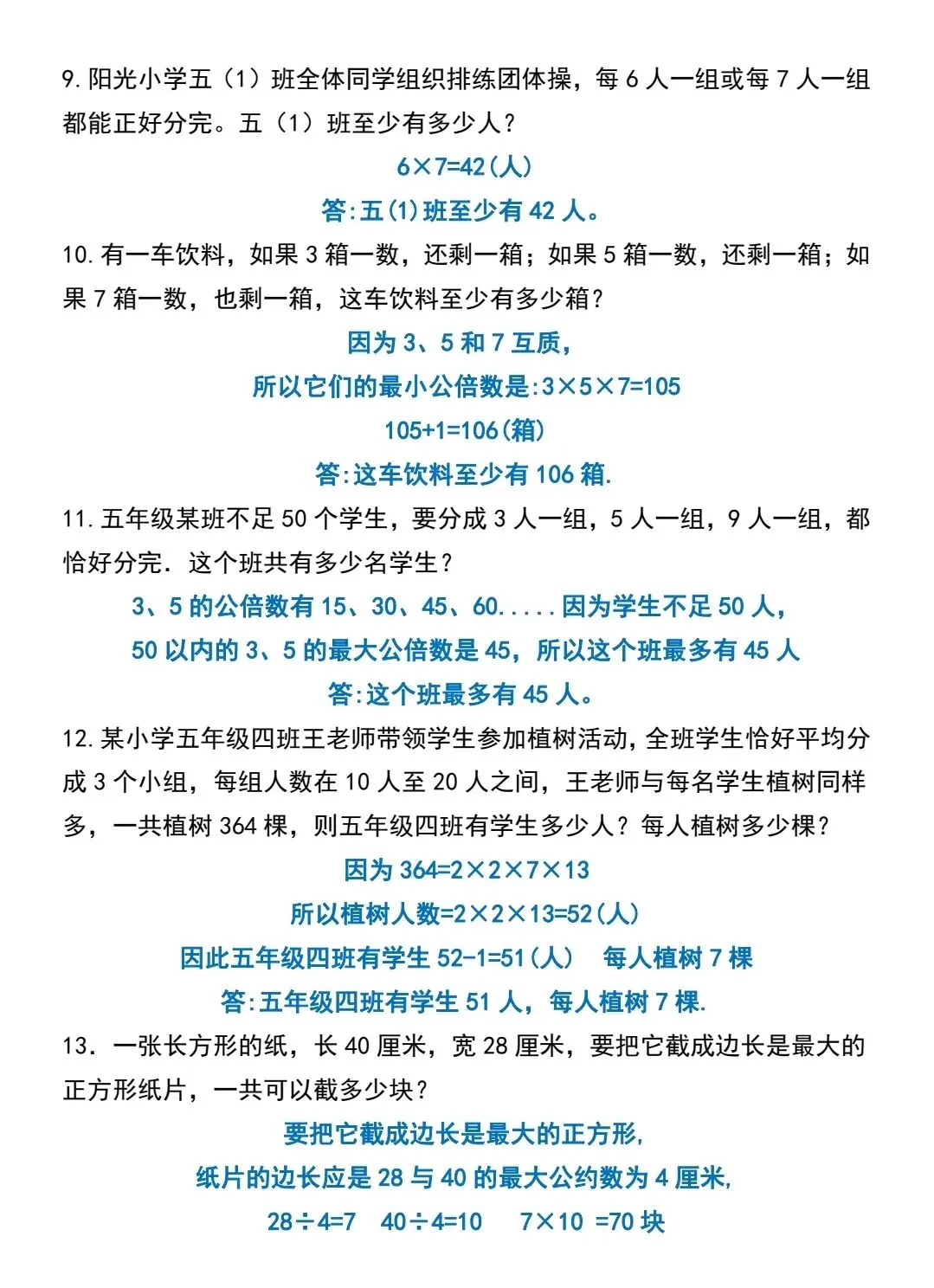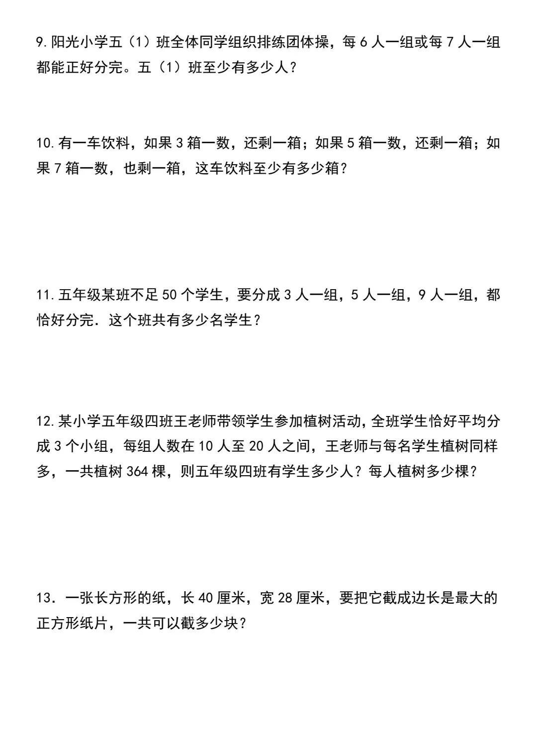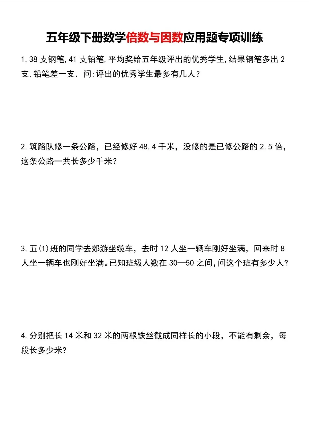 五年级下数学倍数与因数应用题专项训练(可打印)