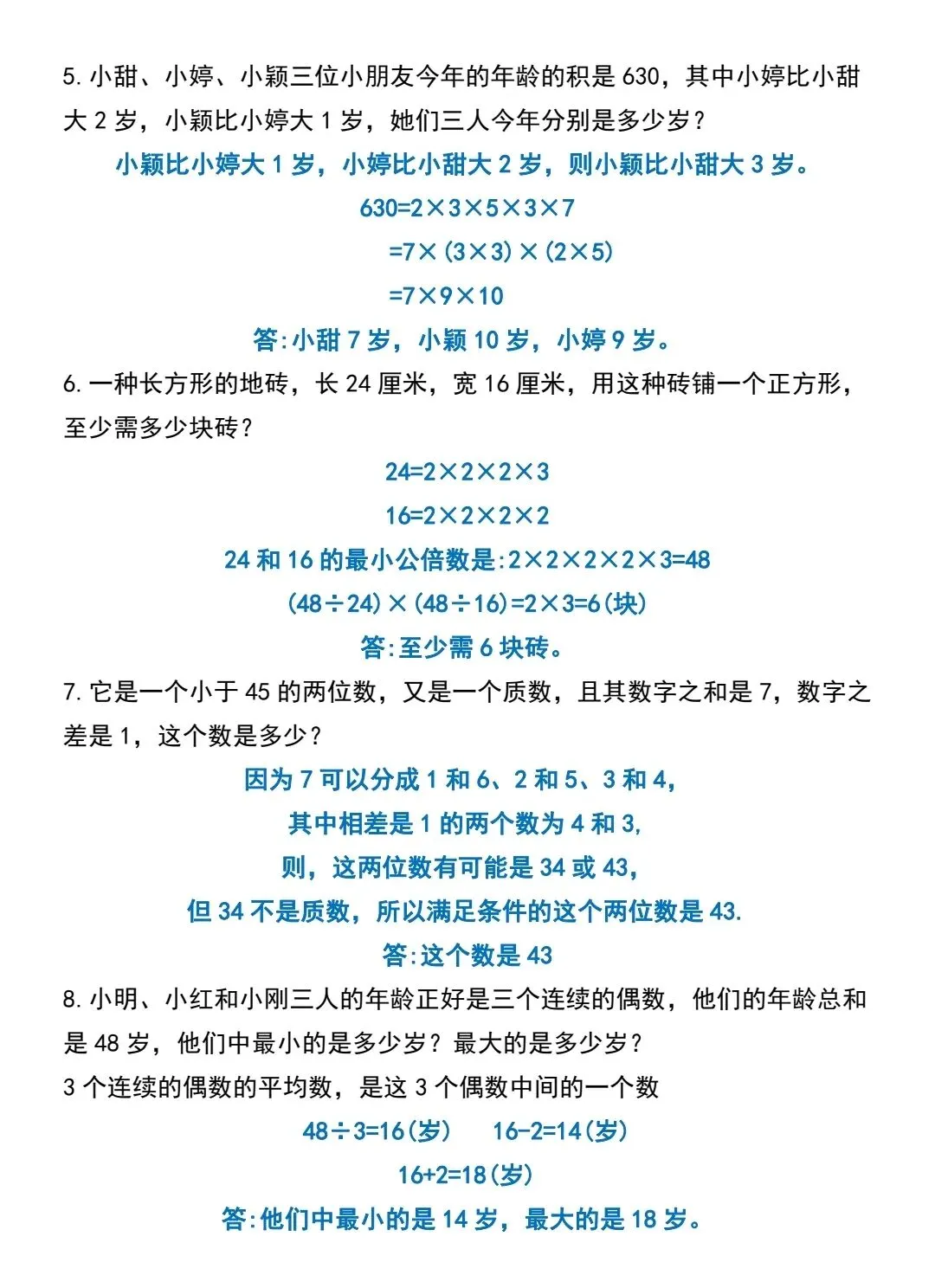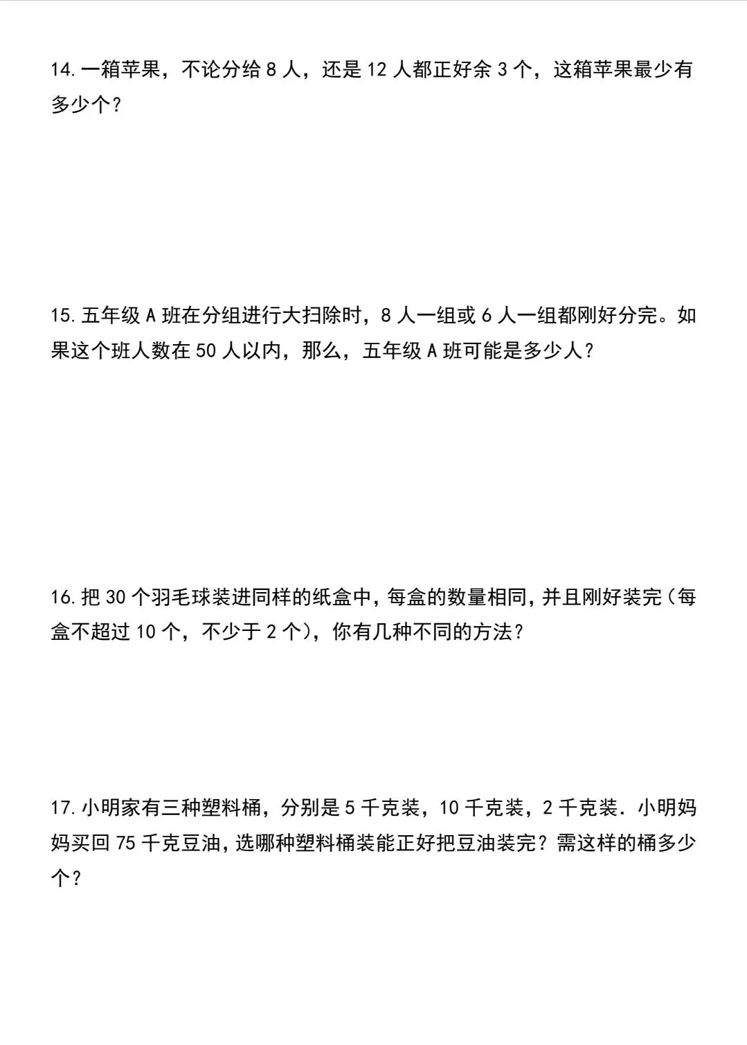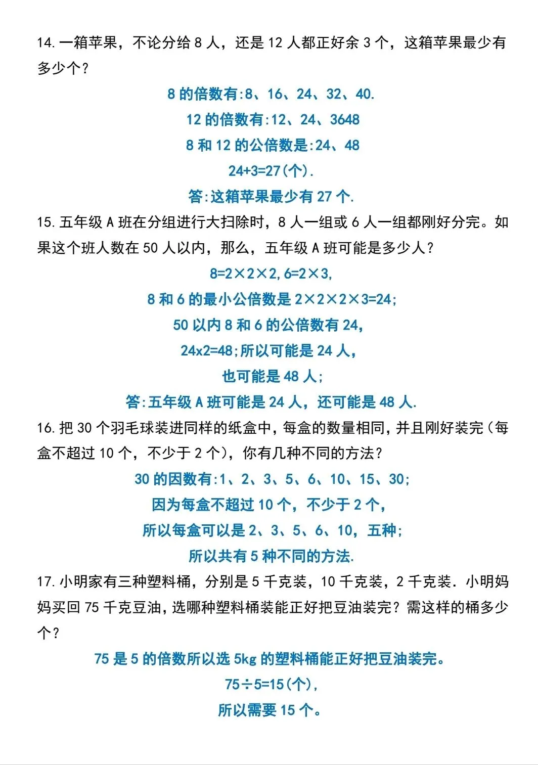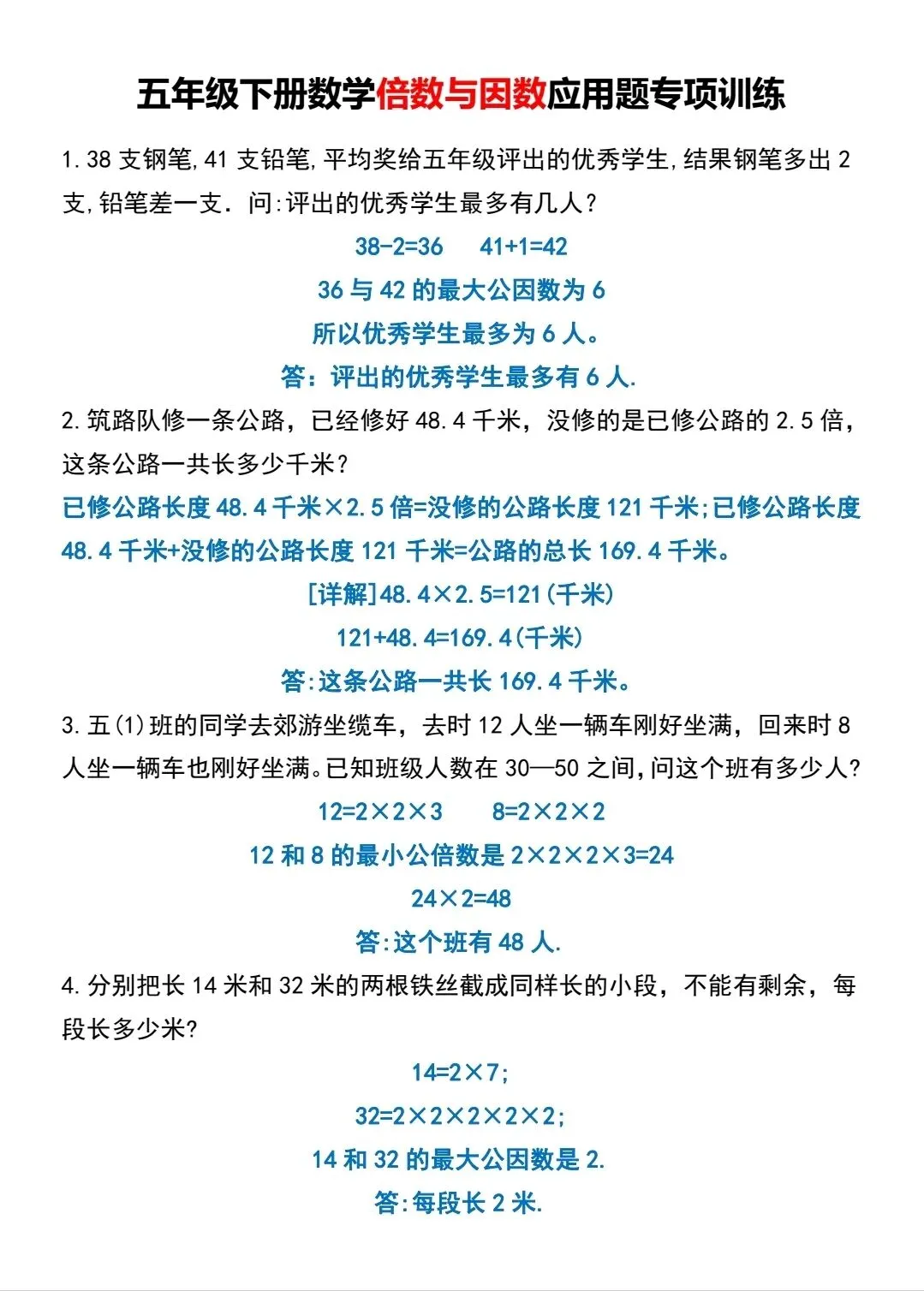 五年级下数学倍数与因数应用题专项训练(可打印)