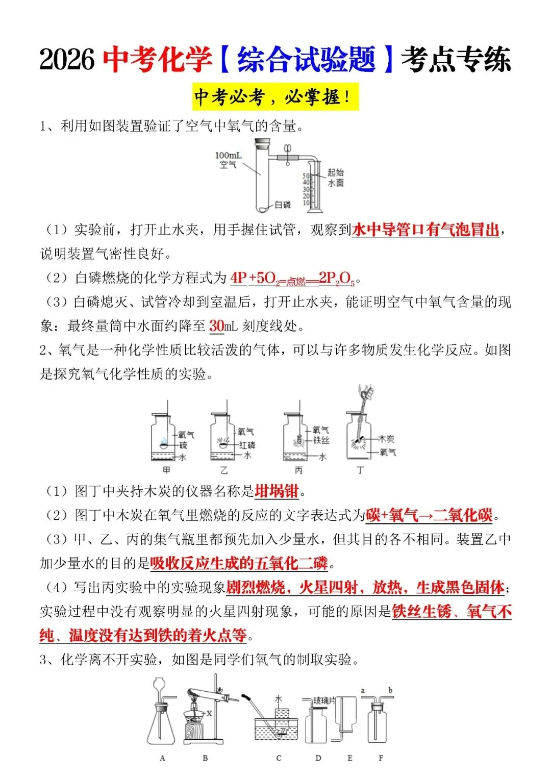 2026中考化学【综合试验题】考点专练(可打印)中考必考,必掌握! 初中生日常 老师今天整理了2026中考化学【综合试验题】考点专练(可打印)中考必考,必掌握! 电子版阅览 初中生配套学习教辅 如何领取这个电子版资料