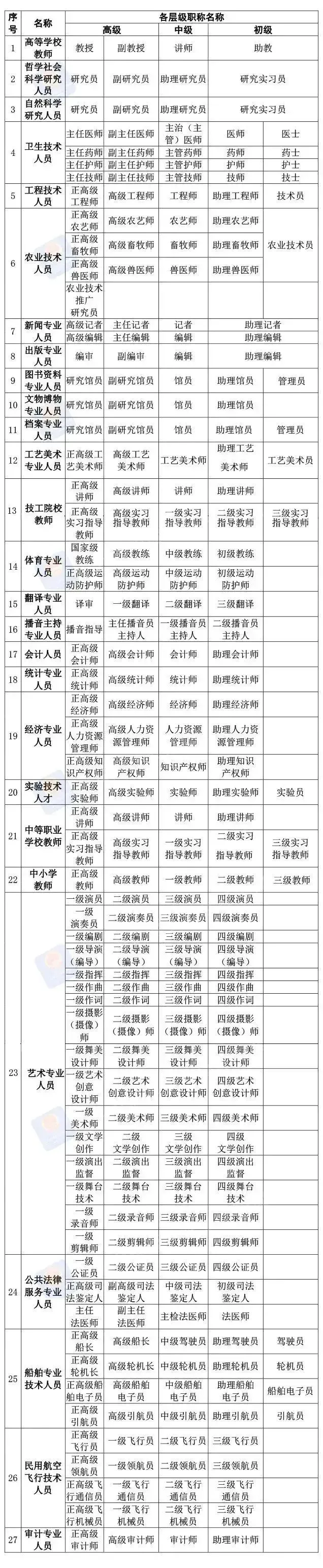 初级、中级职称实行全国统一考试的专业不再进行相应的职称评审或认定。