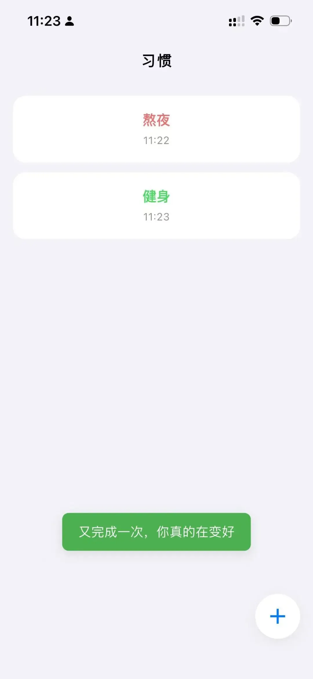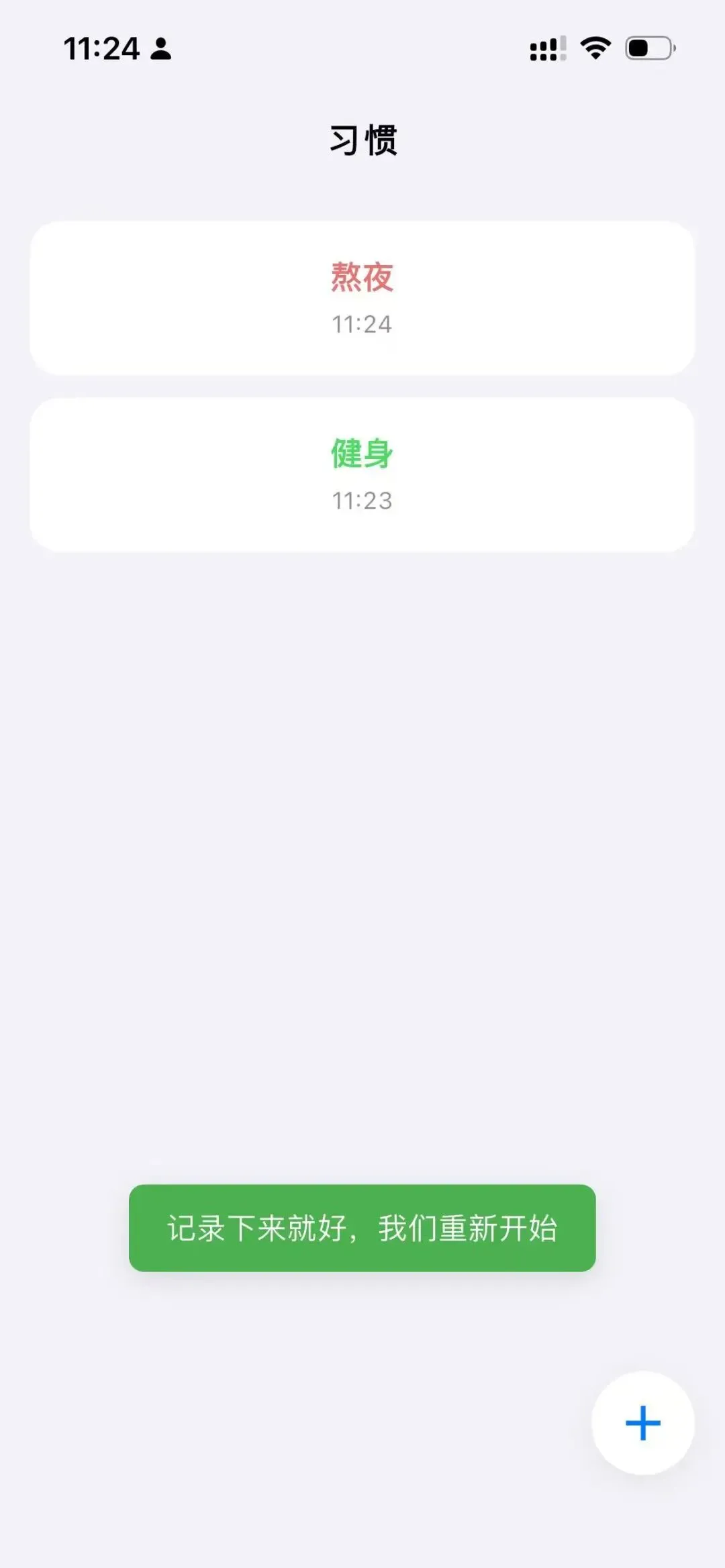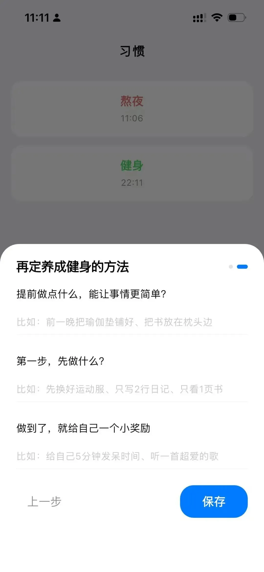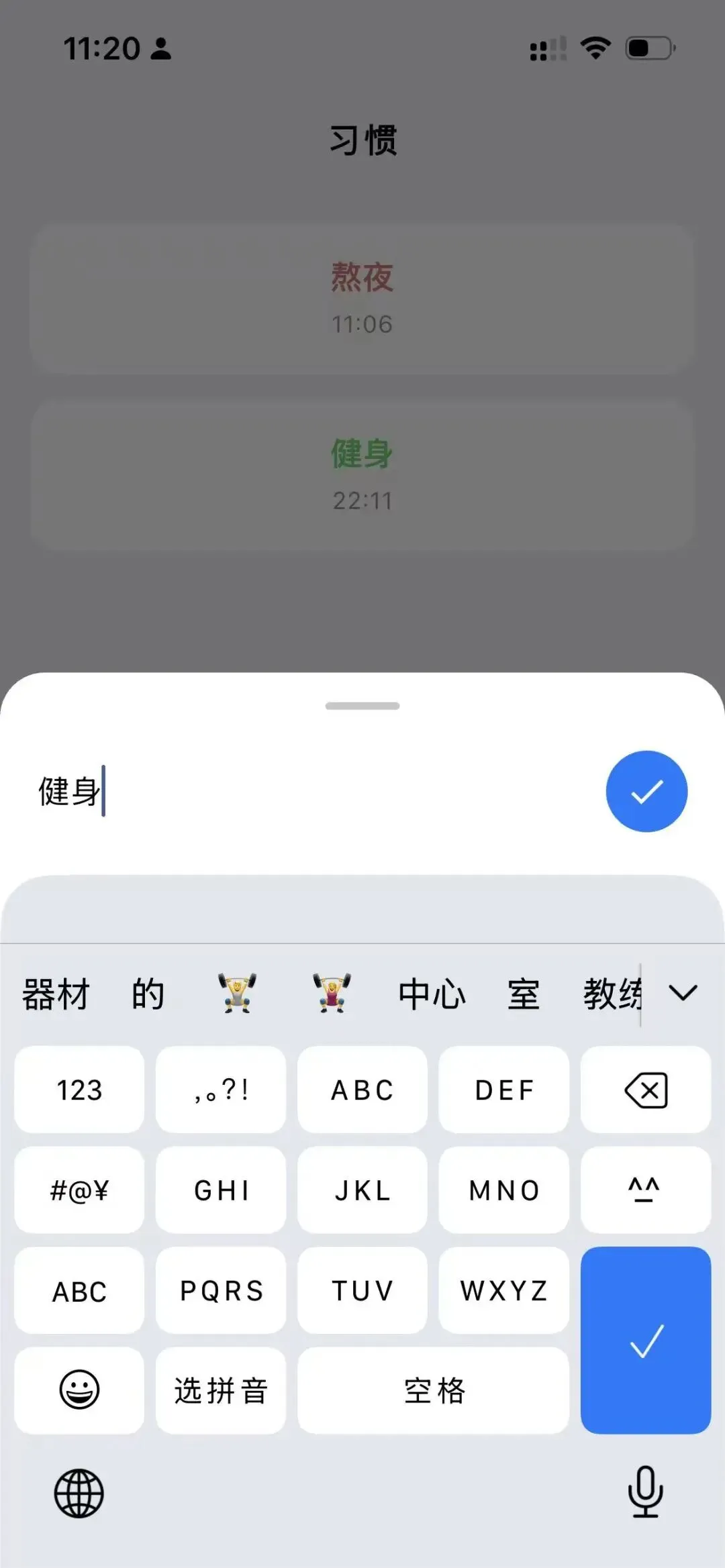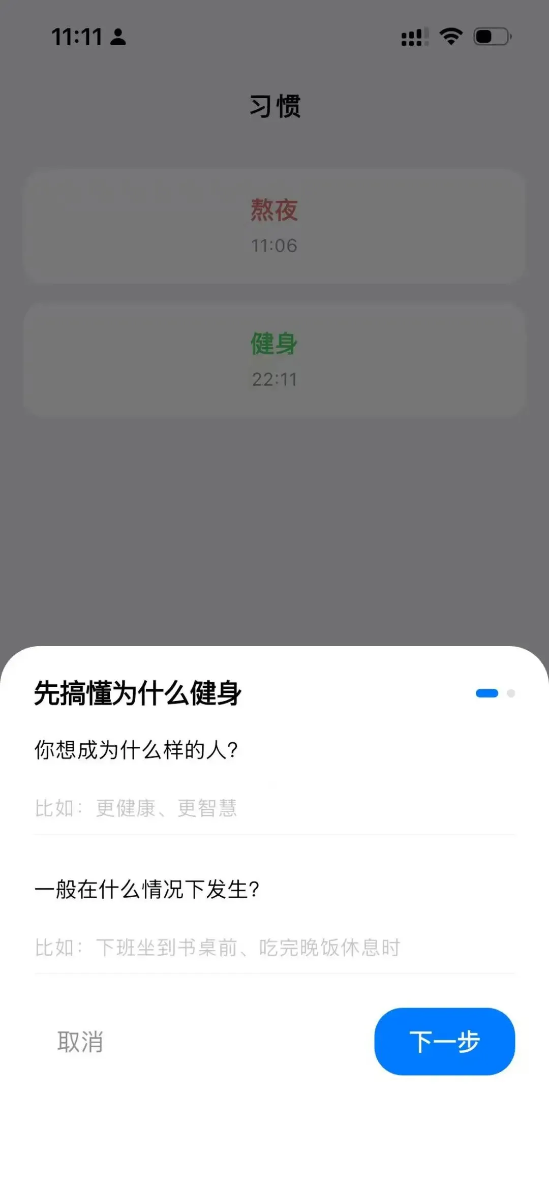 2、降低启动门槛,只用输入习惯名称,和展示最近一次打卡时间。