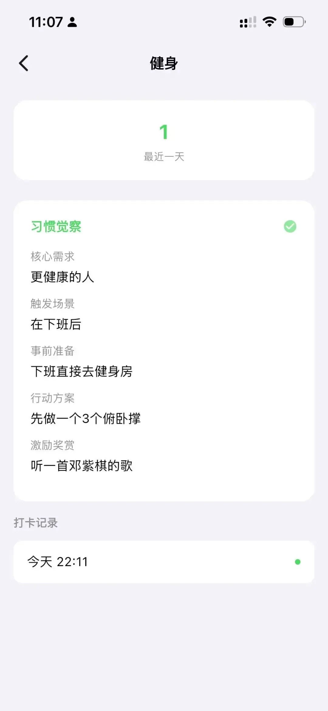 3、长按习惯觉察,自我分析习惯,对习惯进行优化和调整。