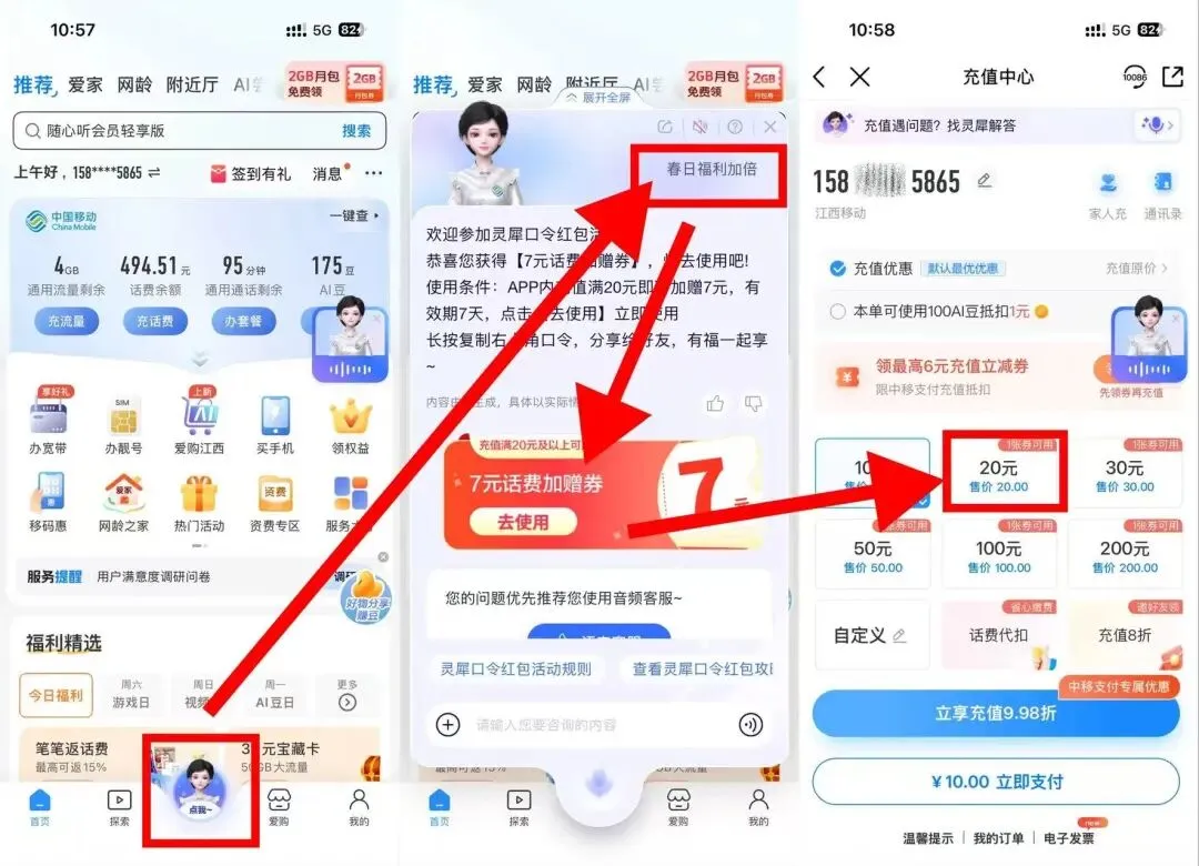 今日线报活动,中国移动app灵犀(春日福利加倍)领取话费券,中行信用卡达标抽10-999元微信立减金,中行信用卡达标抽10-999元微信立减金