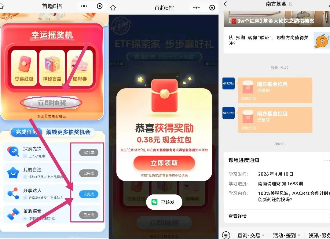温馨提示:中了等推就行了 推包慢,关注上方公众号南方基金领取