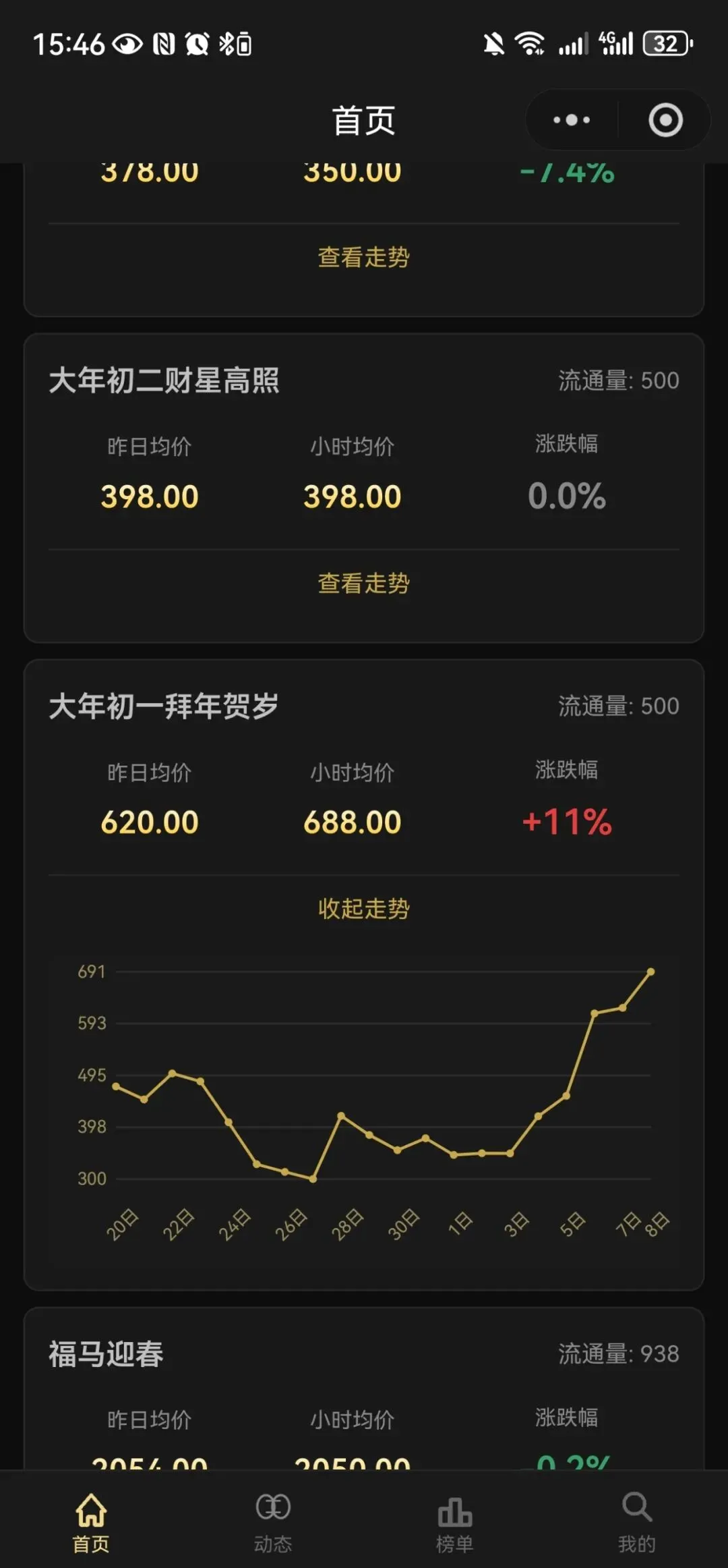 首页:选分类看行情,可排序,部分条目能展开看简单价格走势。