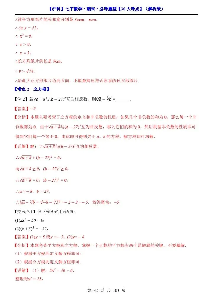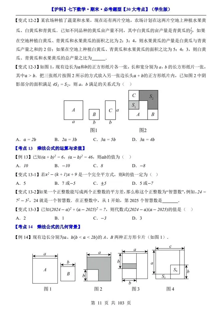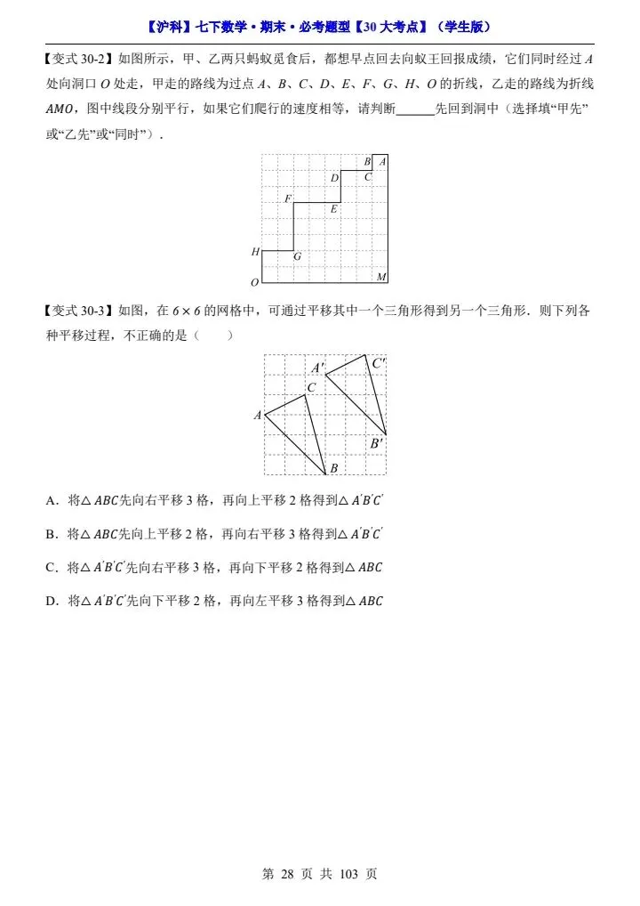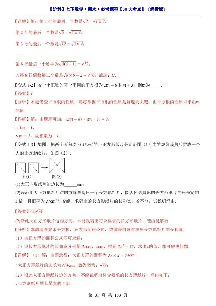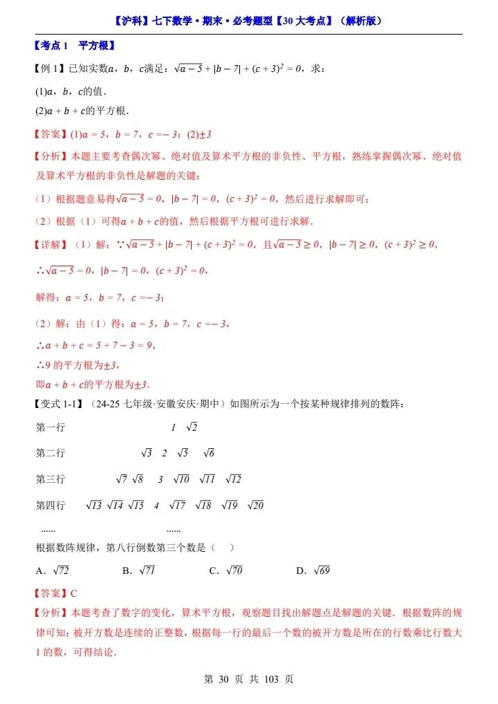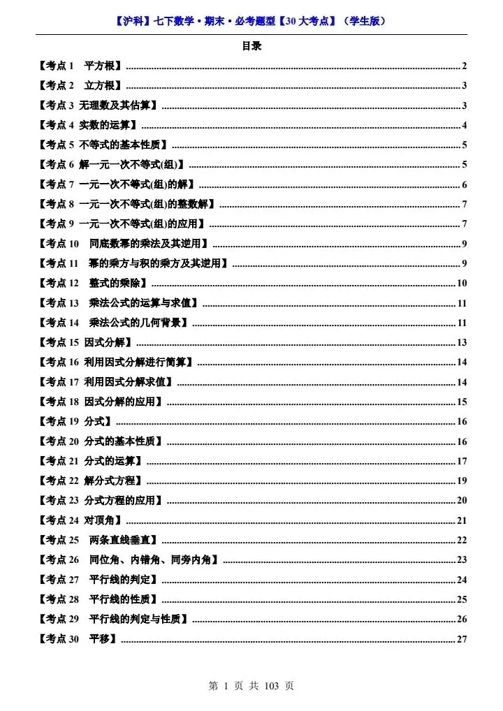 今日分享【沪科版】七下数学期末必考题型·30大考点 含答案(完整电子版可打印)!高清可打印,每日轻量练习,拒绝无效刷题,用系统化资料筑牢学科基础,让假期成为提升的黄金期,开学轻松领跑。