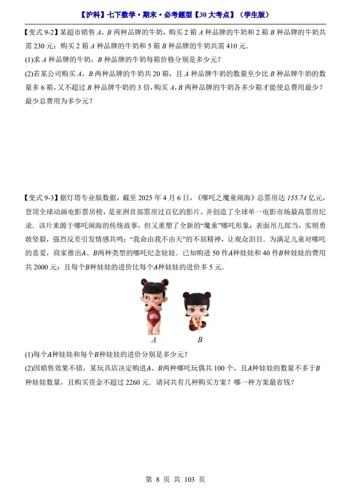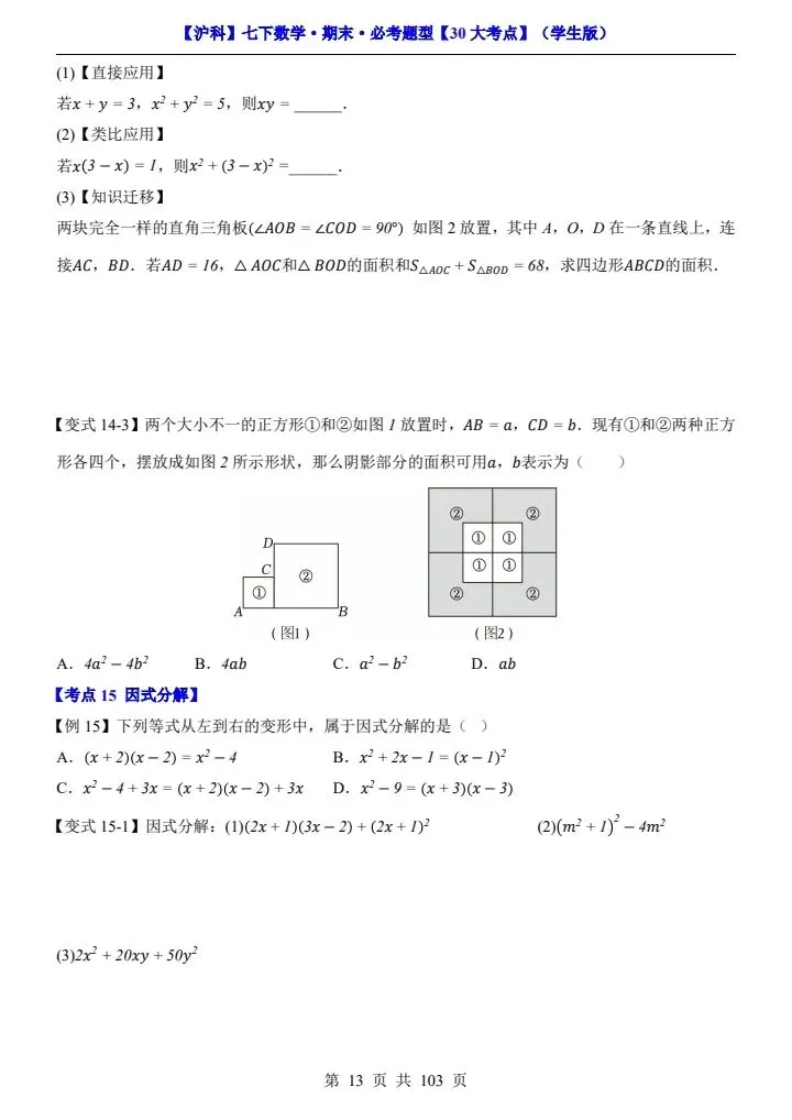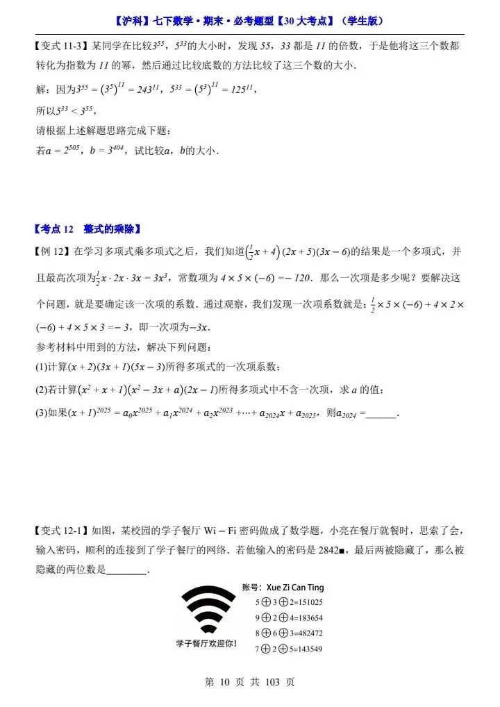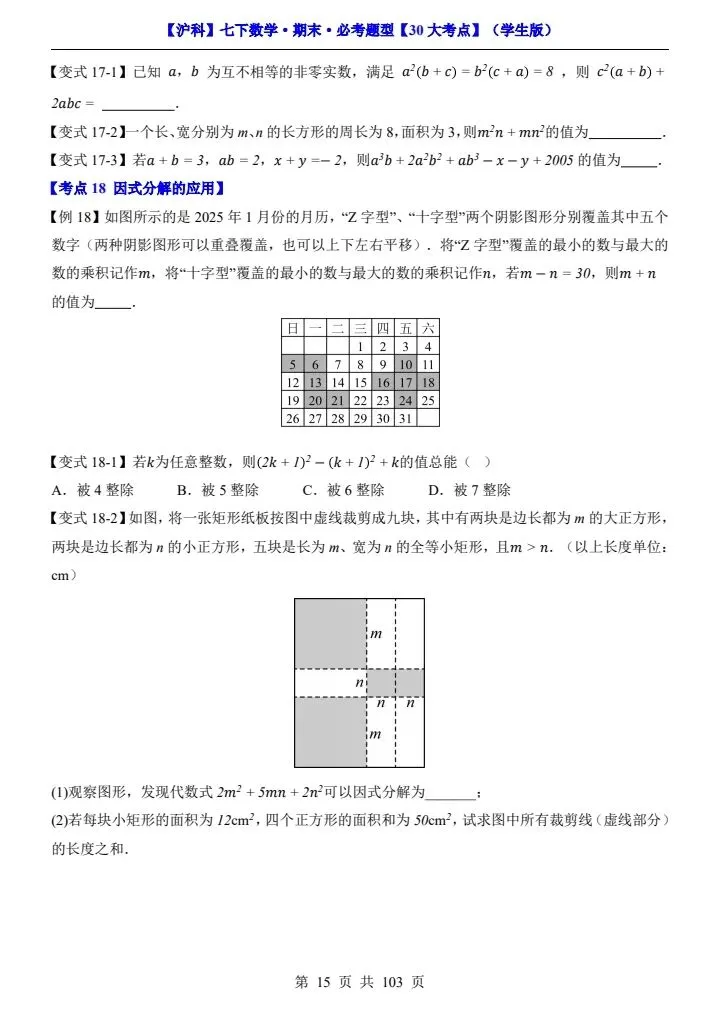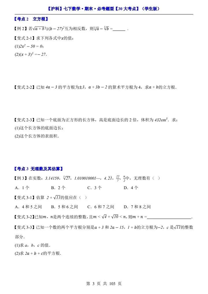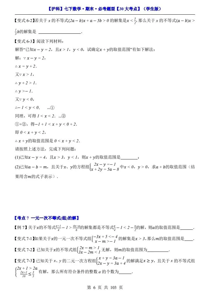 今日分享【沪科版】七下数学期末必考题型·30大考点 含答案(完整电子版可打印)!高清可打印,每日轻量练习,拒绝无效刷题,用系统化资料筑牢学科基础,让假期成为提升的黄金期,开学轻松领跑。