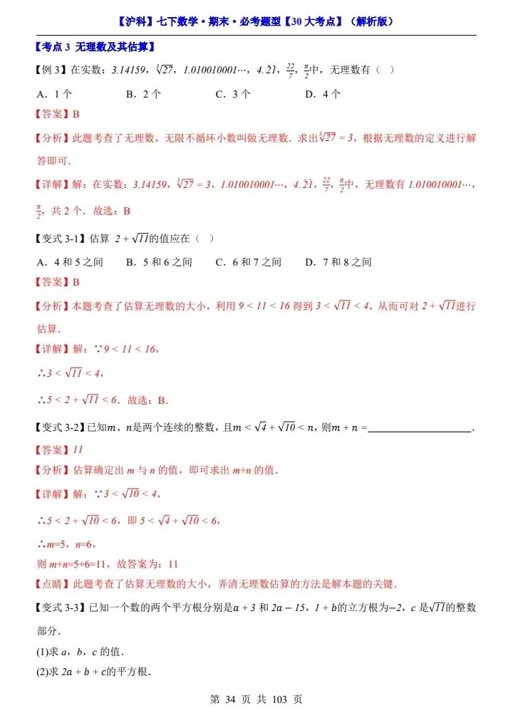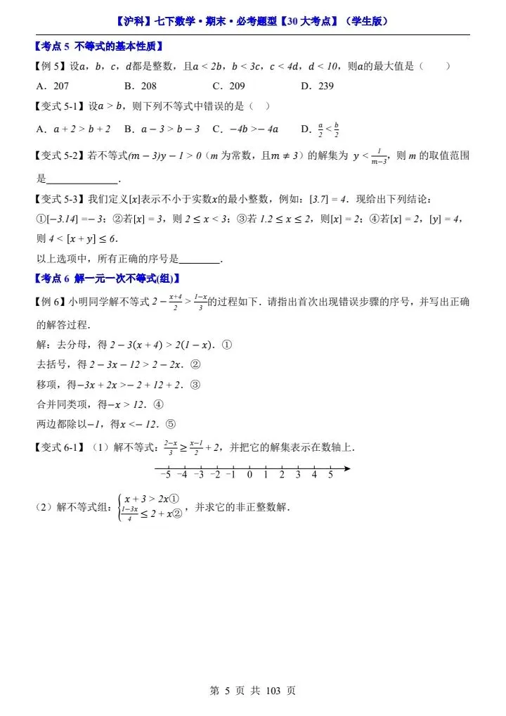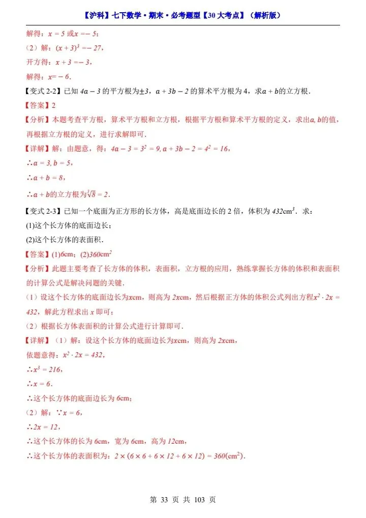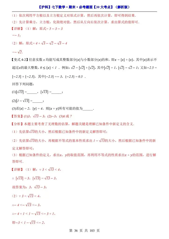 【沪科版】七下数学期末必考题型·30大考点 含答案(完整电子版可打印)