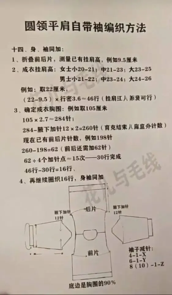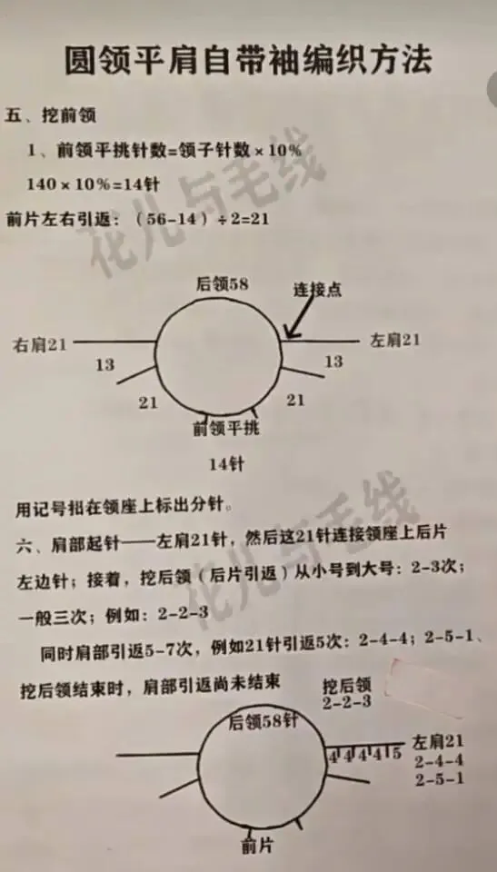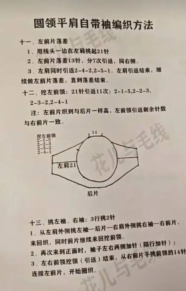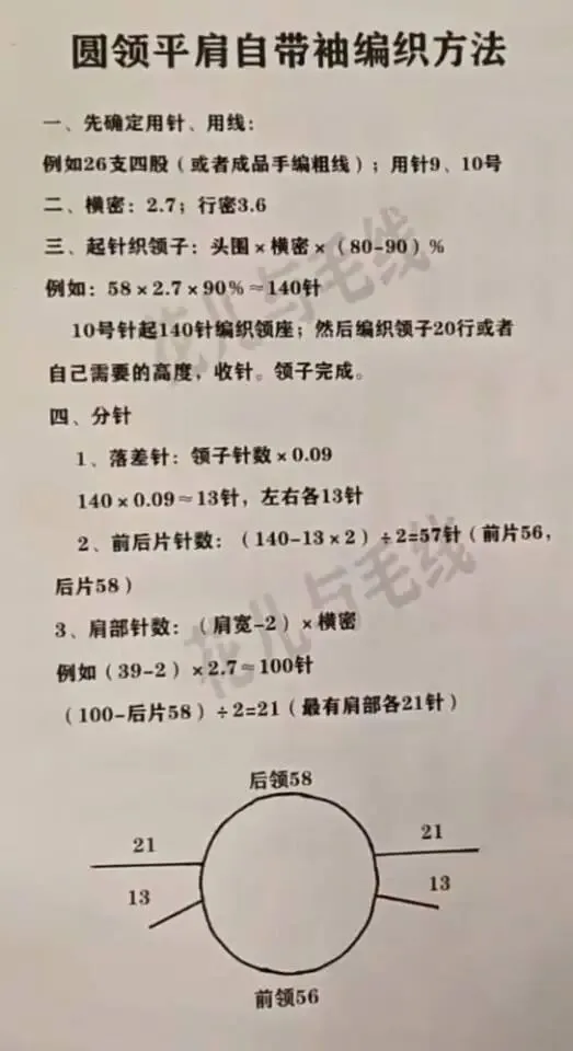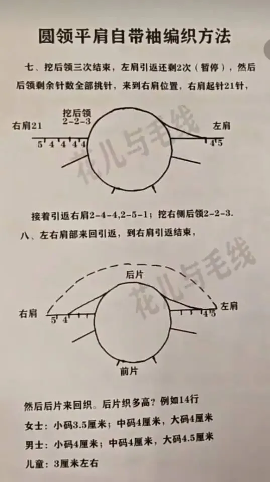 收藏平肩自带袖毛衣更详细编织说明(感谢老师的教程)