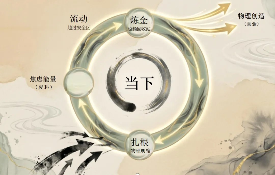 目的:只要你的物理身体在“当下”产生了一个真实的创造性动作,那股盘旋在“未来”的庞大能量就会瞬间被导流进三维现实,焦虑感会立刻削弱。
