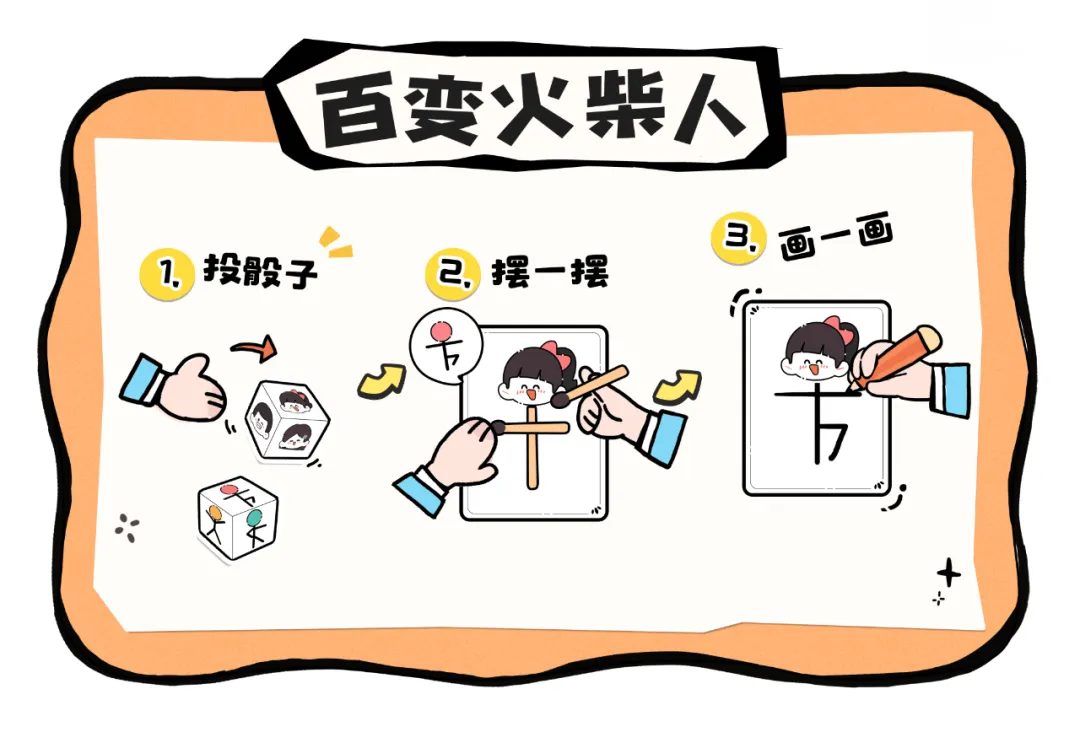 幼儿园中班益智区《百变火柴人》自制玩教具电子版素材