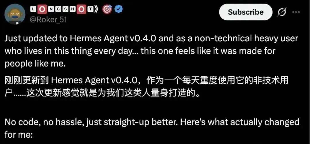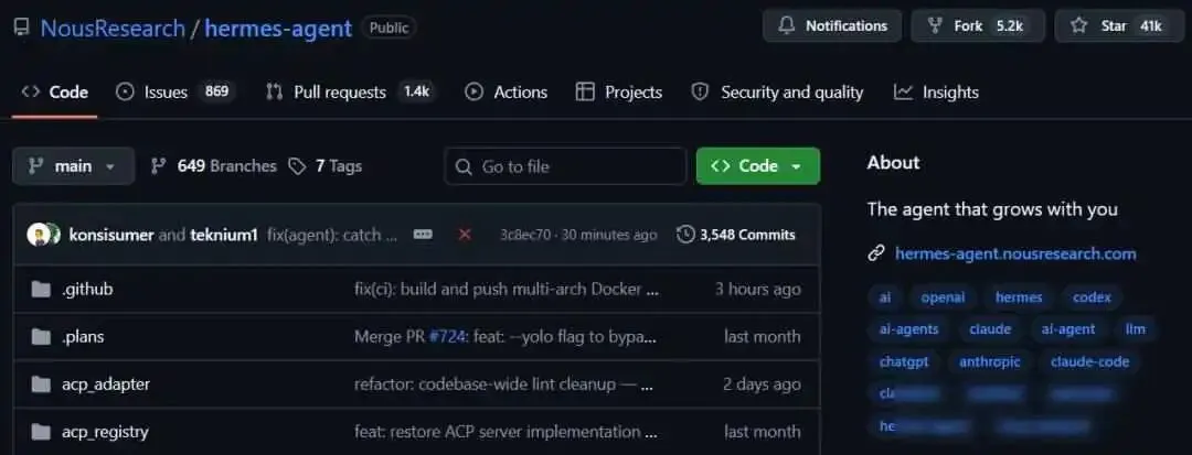 2026年2月,一个叫Nos Research的小团队在GitHub上发布了一个开源项目,名字是Hermes Agent,他们没做任何宣传,也没花钱打广告,但三个月后,这个项目的星标数就冲到了四万,有超过240人提交代码,合并的修改请求达到1400多条,版本更新速度特别快,到4月初已经推出v0.8.0,还专门标注为”intelligence release”,意思是这次更新的重点不是提高稳定性,而是让系统变得更聪明。