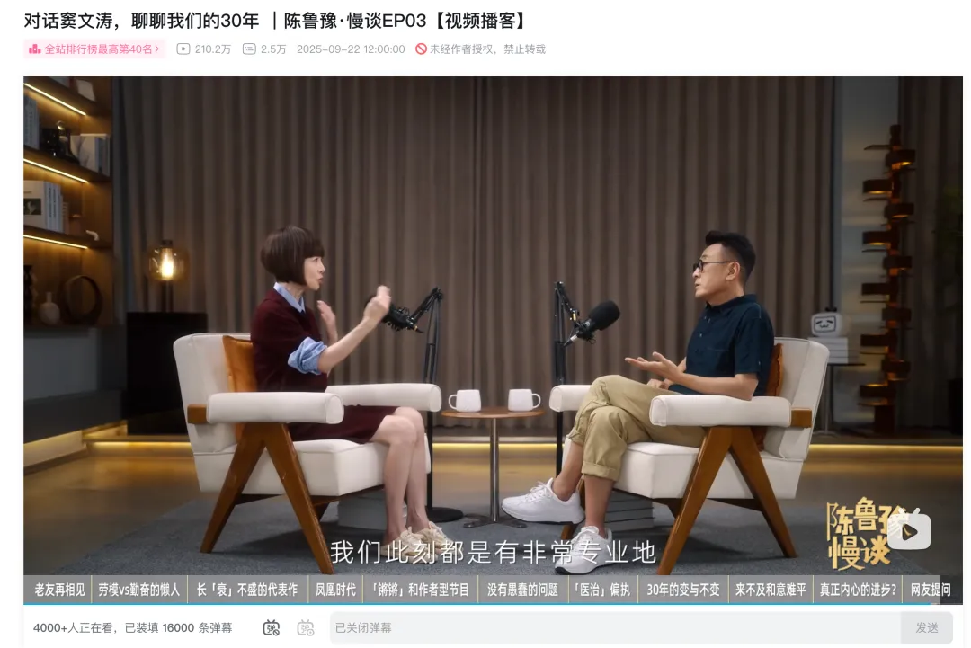 后来,我又在 B 站上看过,鲁豫对谈窦文涛的节目 ——