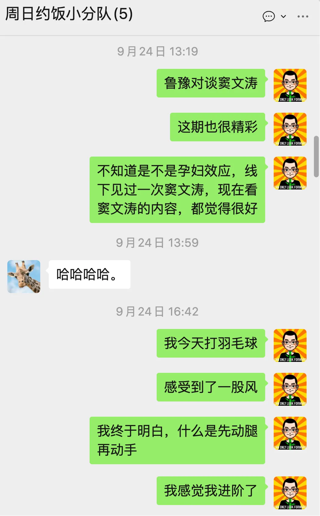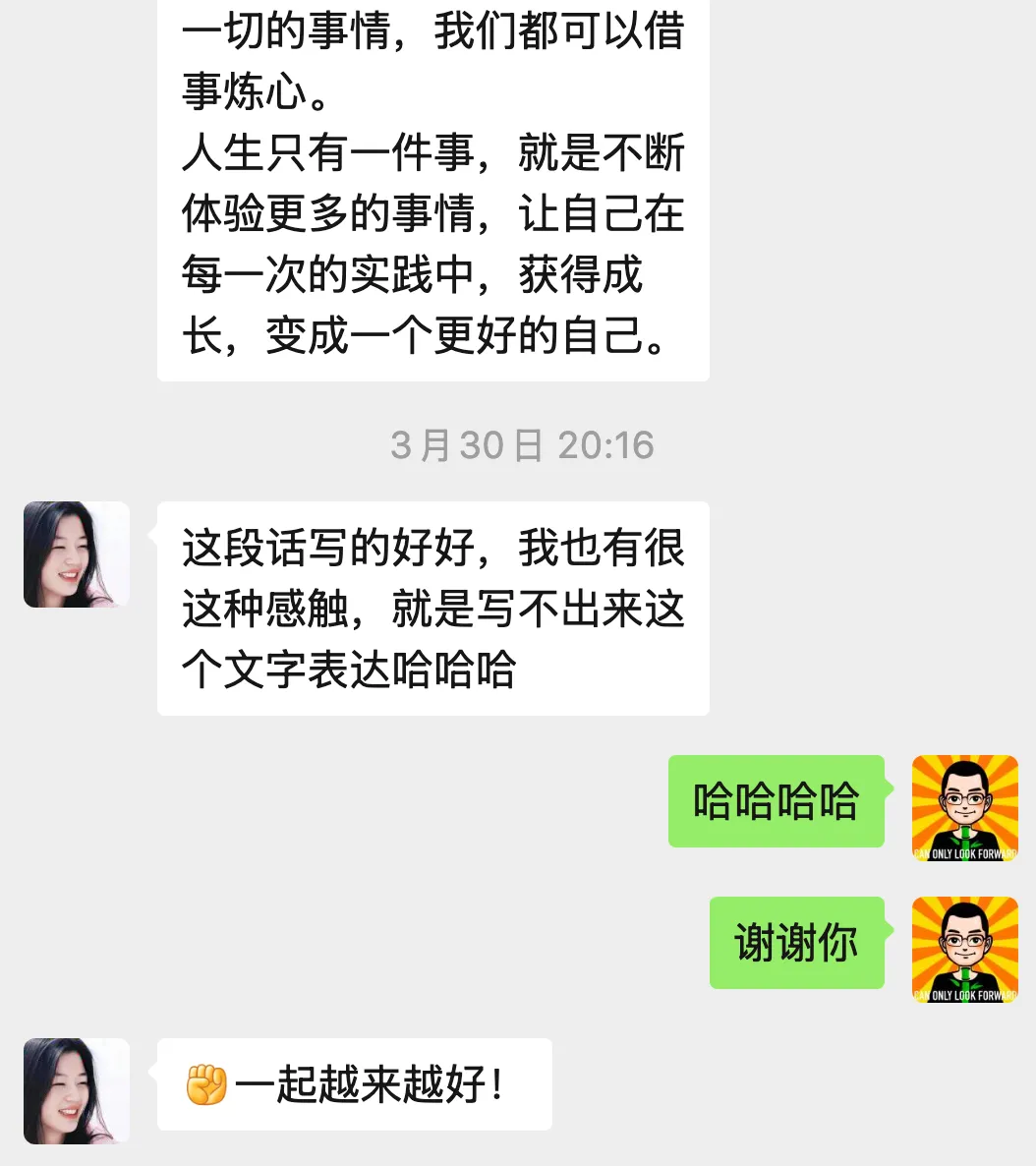 所以,我决定以后和别人聊天,也全神贯注的,根据当下的场景去反应,去思考,把注意力放在对方身上,这样一定会产生很多不一样的东西。