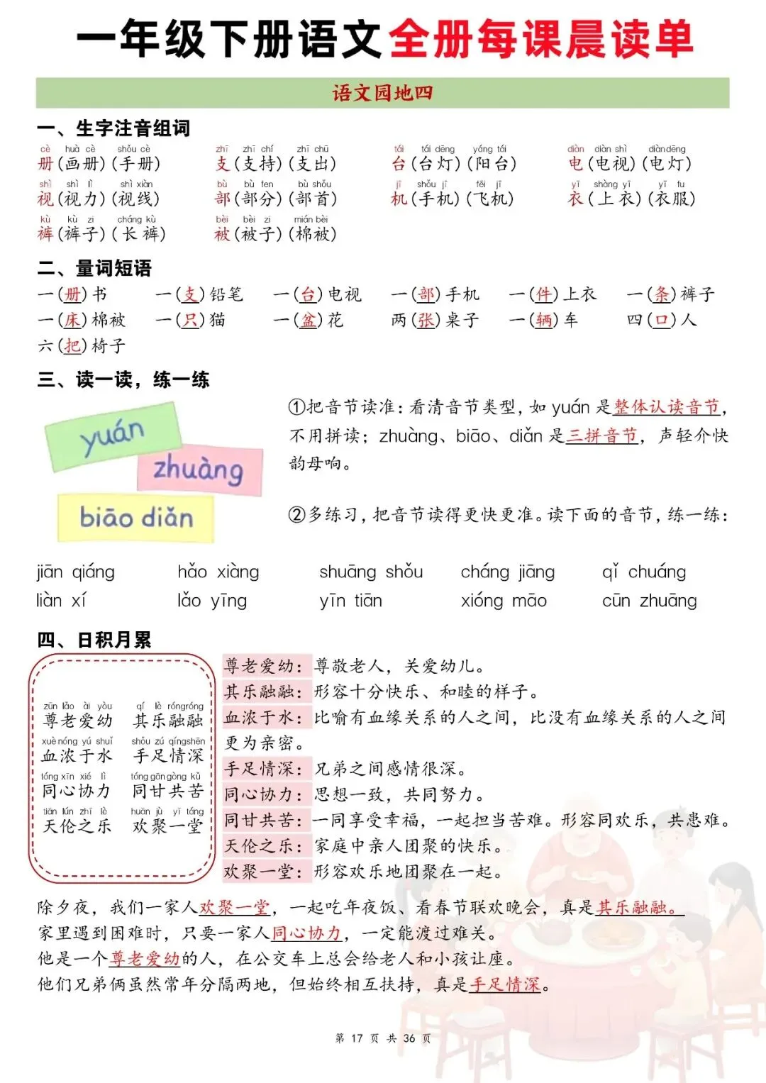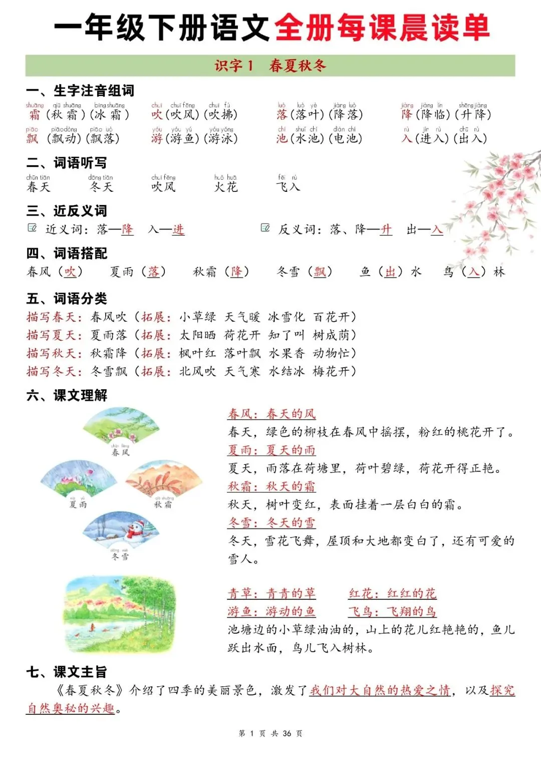 一年级下册知识点可打印,全册每课晨读单