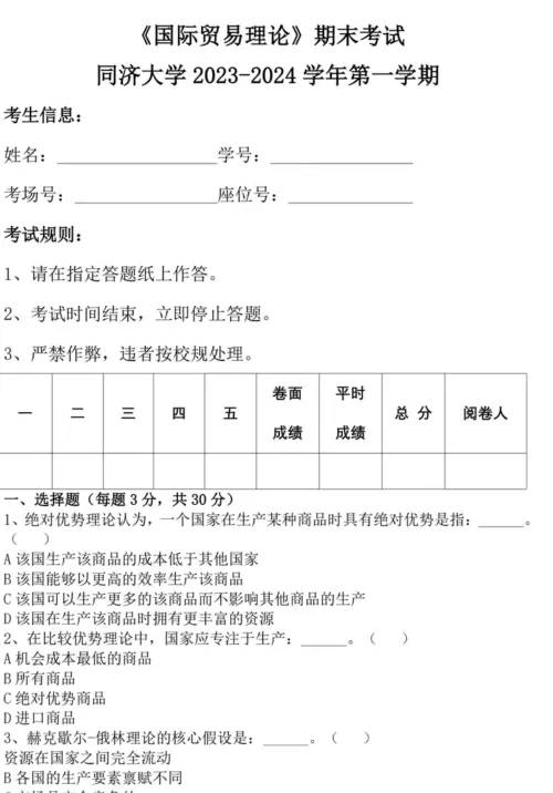 同济大学大学国际贸易理论期末试题,可打印 获取更多考研资料可加小编QQ:3542263029或者v信kyzlfx 先点“赞+在看”联系客服即可免费赠送公共课(政治英语数学)资料 其他院校陆续更新中…….有需要联系客服留言即可 更多真题资料会第一时间为大家推送 还有其他年份,可联系客服详询 01 部分截图如下🔥 温馨服务 免责申明:资料整理于网络如有侵权请告知删除 长按并识别下方二维码关注公众号,不定时发放考研福利哦 扫一扫添加微信好友,获取更多考研信息哦~