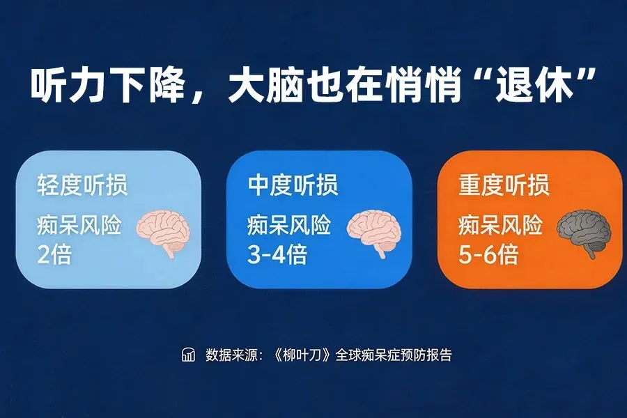 重度听力下降,风险高达5-6倍
