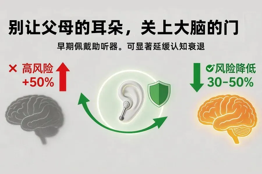 好消息是:及时佩戴助听器,可降低约30%-50%的痴呆风险。