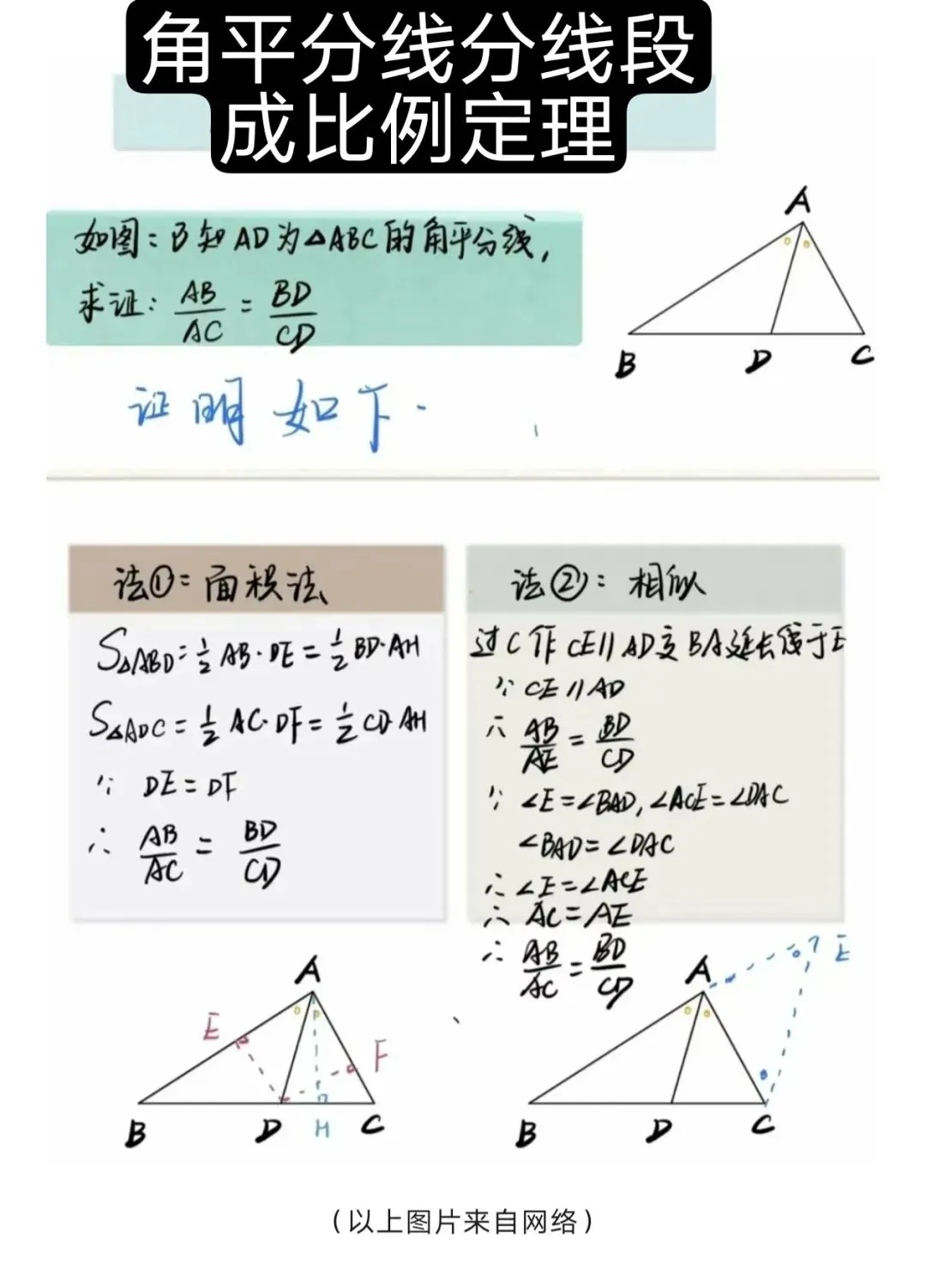 :这两道题还可以通过以下“角平分线分线段成比例”的方法求解,请你停下来,想一想,试一试。