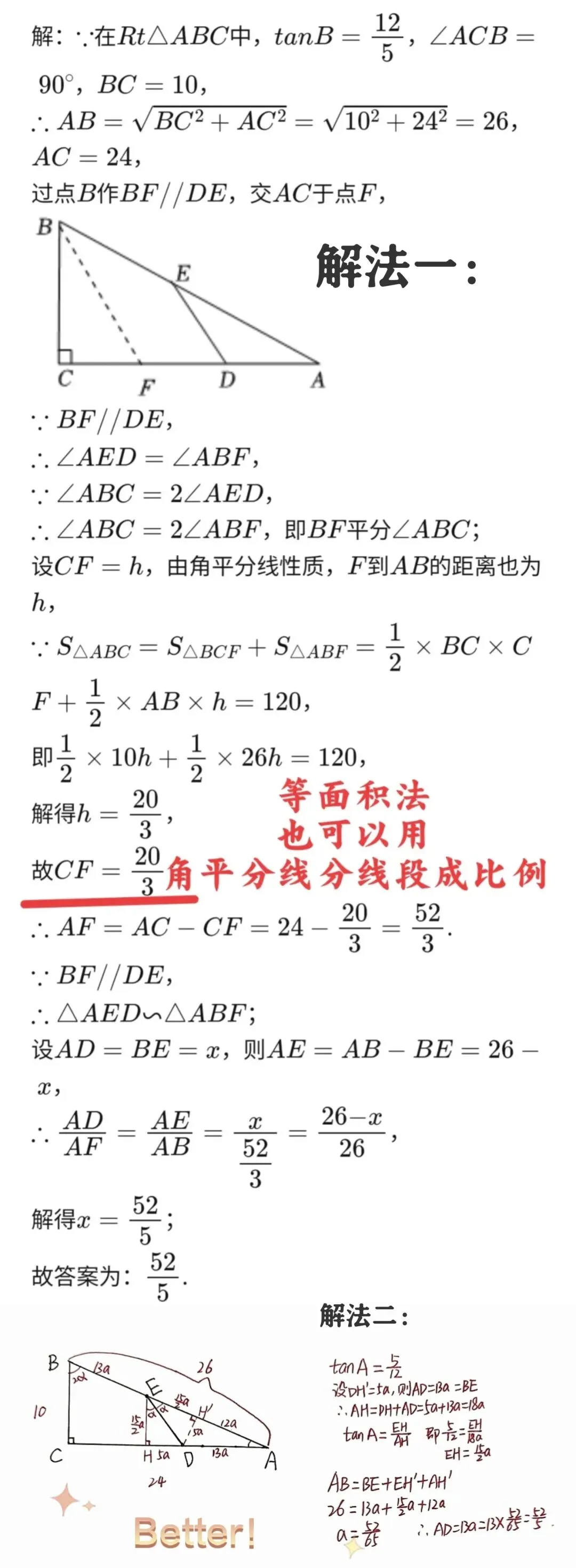 简言之,就是“以角为线索,用三角函数牵线,靠解比例方程破局”,让几何关系的计算更聚焦、更简洁。