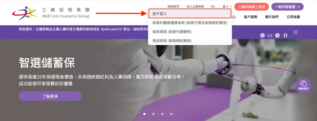 进入立桥人寿的官网后点击「登入 – 客户登入」
