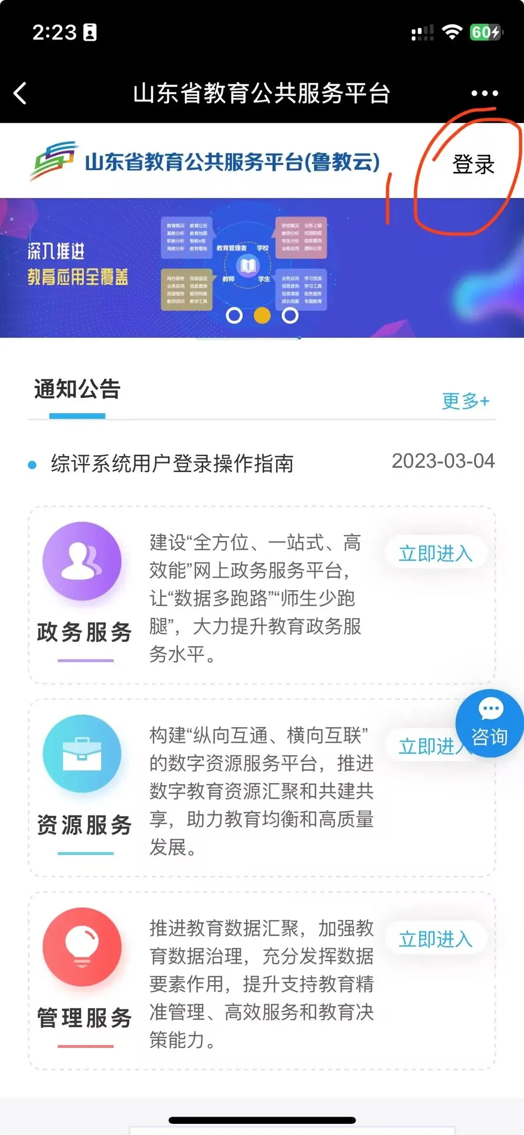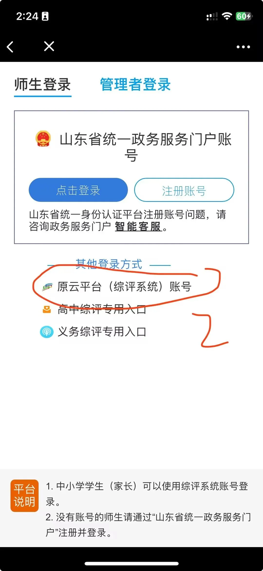 登录平台请使用学生的综评账号和密码,登录【山东省教育公共服务平台】(网址 https://www.sdei.edu.cn )也可扫描下方二维码登陆。