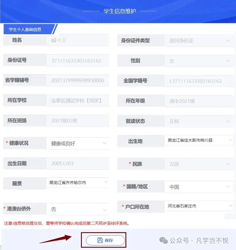 重要提示:请在学校规定的时间内完成上述操作。点击【保存】后,您的修改内容将进入待审核状态。您可以点击“待审核记录”中的【查看详情】来确认您提交的信息。