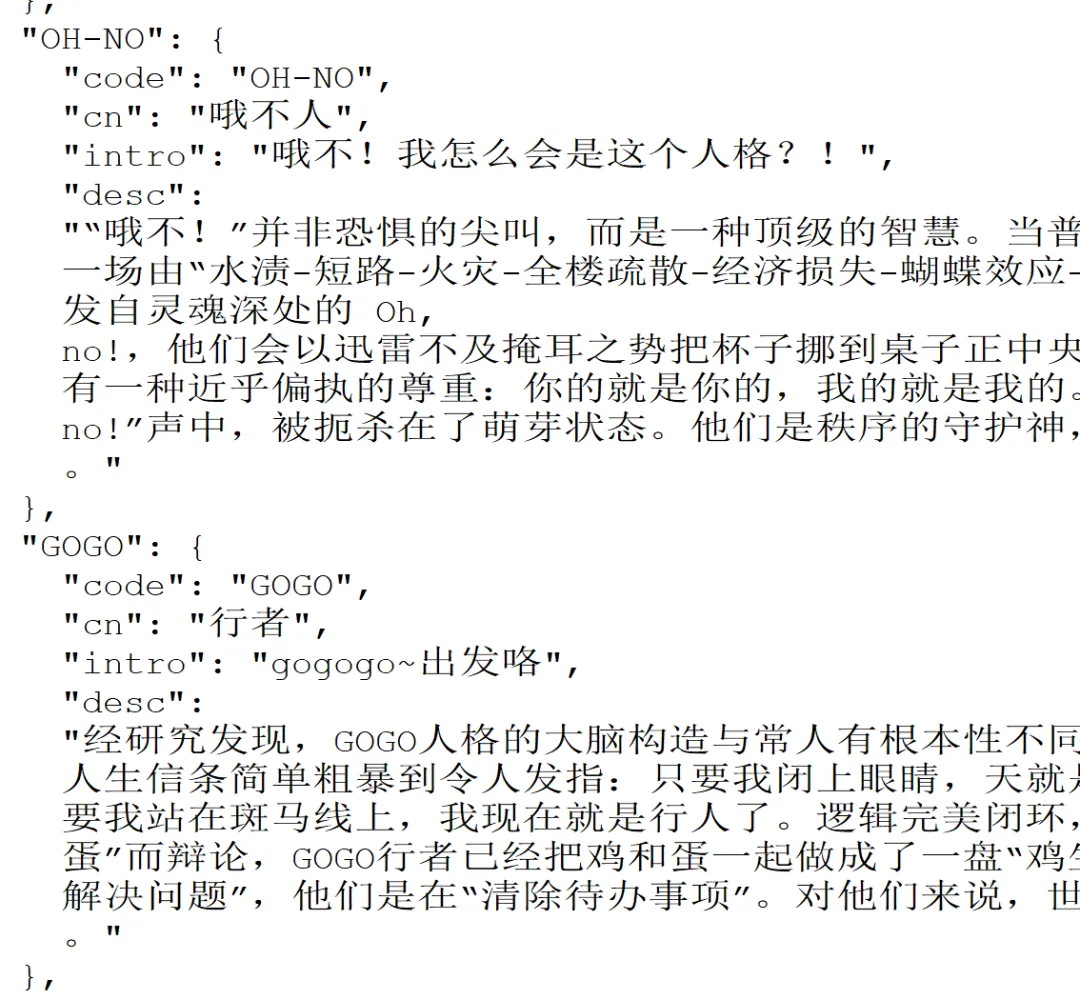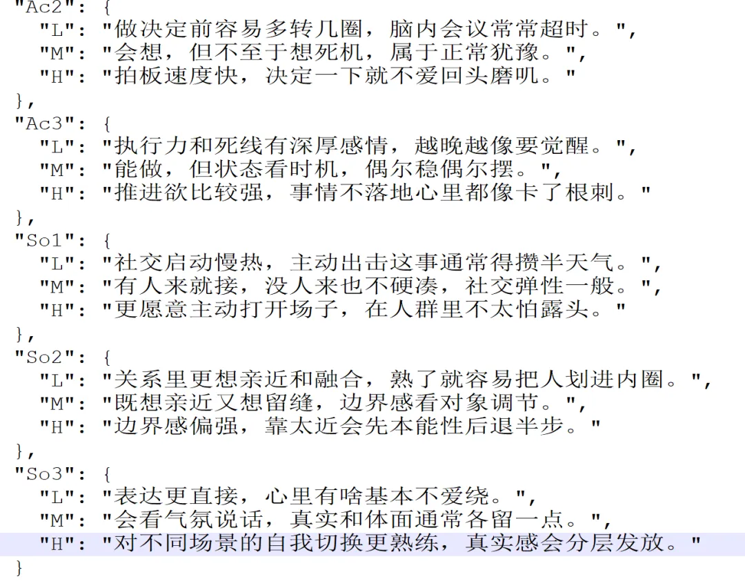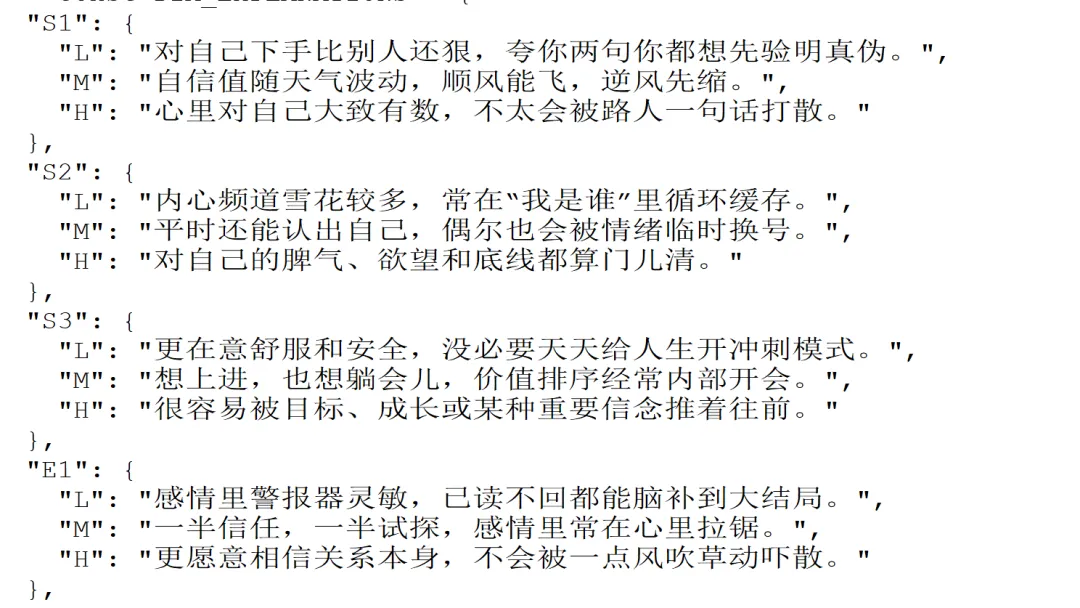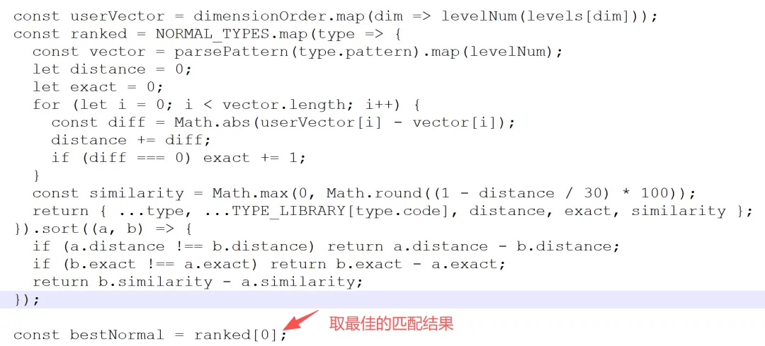 如此计算出十五个维度的等级,接着就是和定义好的人格类型匹配:
