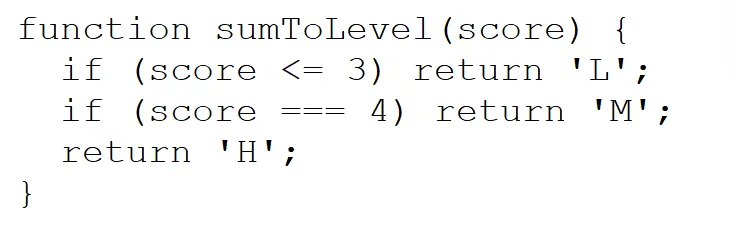 两道题目里,选项的数值相加,小于等于3分代表L(低级别),等于4分则M(中等),否则H(高)