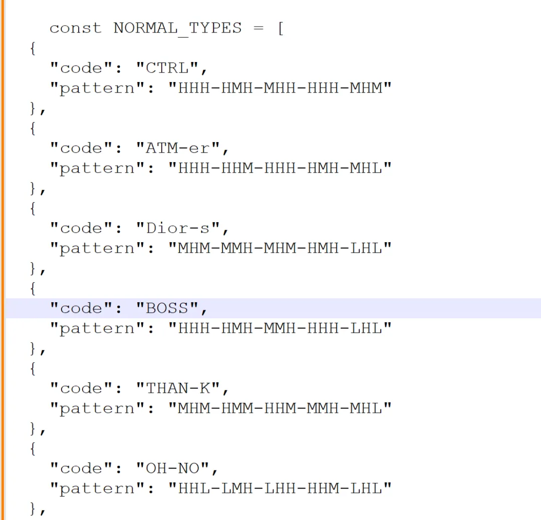 比如:OH-NO人,对应的就是:HHL-LMH-LHH-HHM-LHL