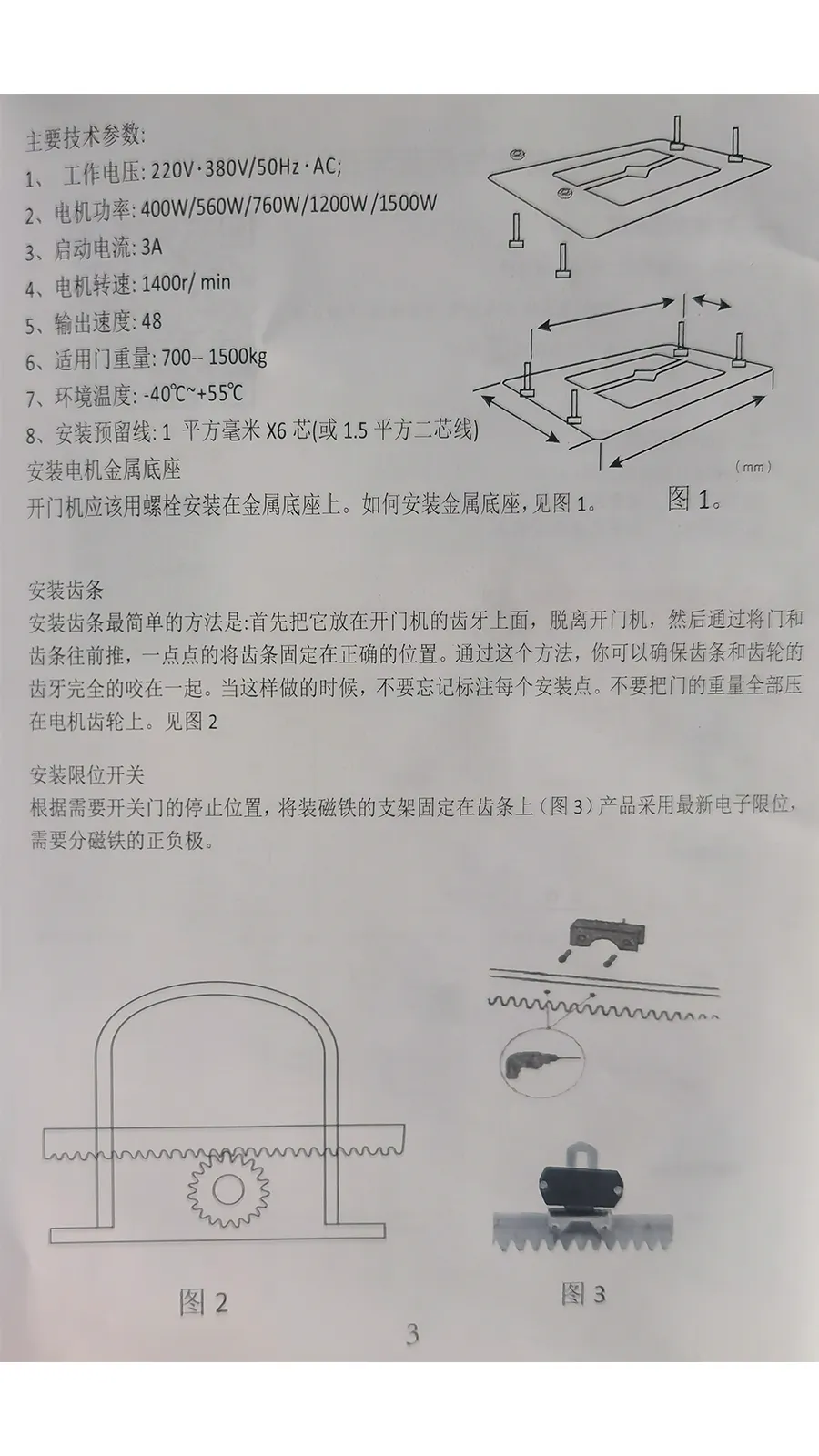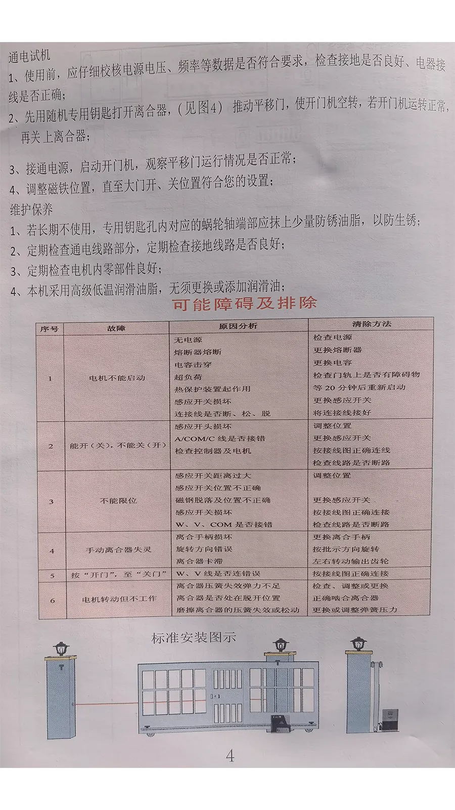 平移式开门机安装注意事项及说明