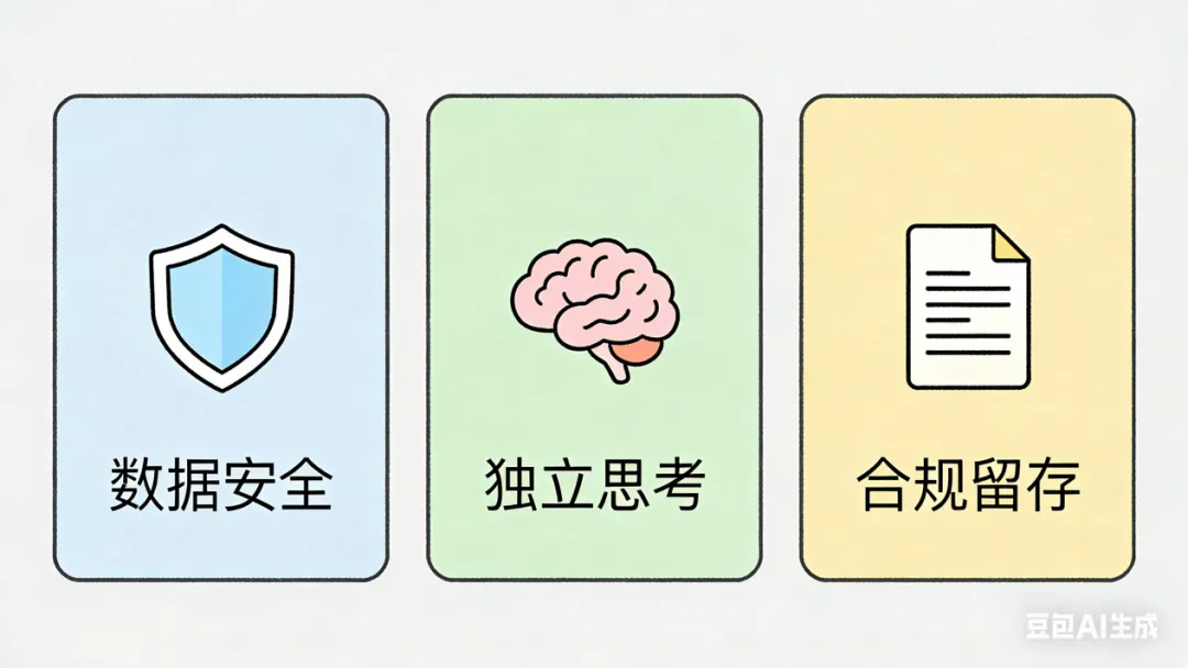 不向AI输入个人敏感信息、学校涉密数据(依据《数据安全法》第21条)。
