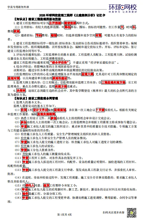 免费领【26年监理考点记忆卡】pdf可打印!