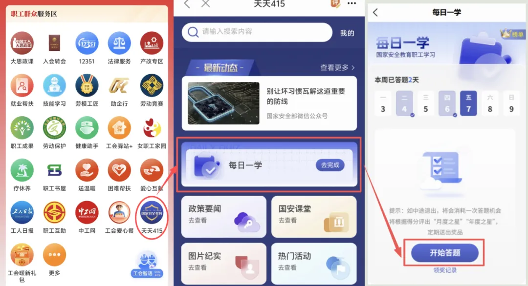 职工进入“天天415”模块