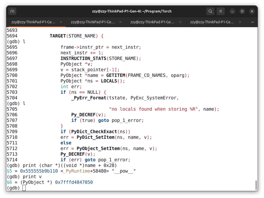 1 breakpoint keep y 0x000055555580c927 in _PyEval_EvalFrameDefaultat ../Python/generated_cases.c.h:5710stop only if name==0x555555b9b0e8