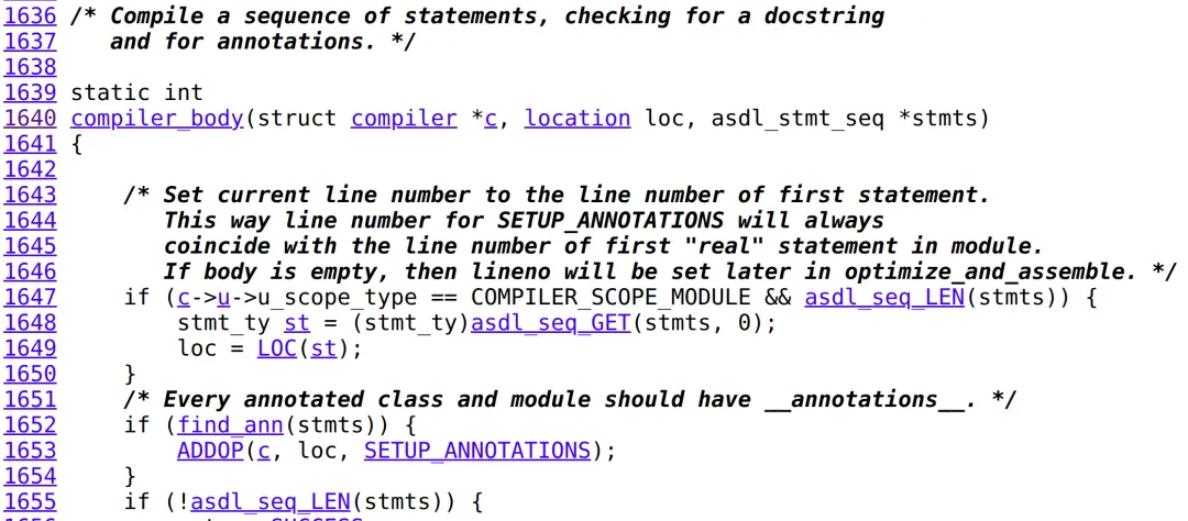 breakpoint keep y 0x000055555581e9ed in compiler_body at ../Python/compile.c:1661stop only if stmts==0x555559484138