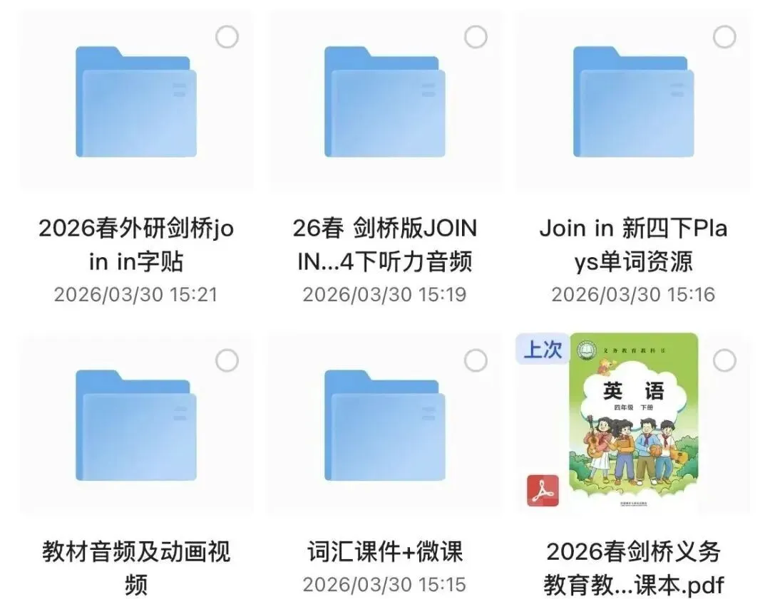 「2026春新版外研版剑桥英语join in四年下册新教材资源汇总」