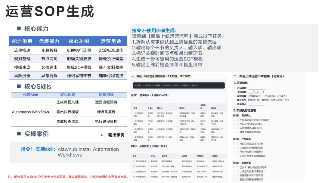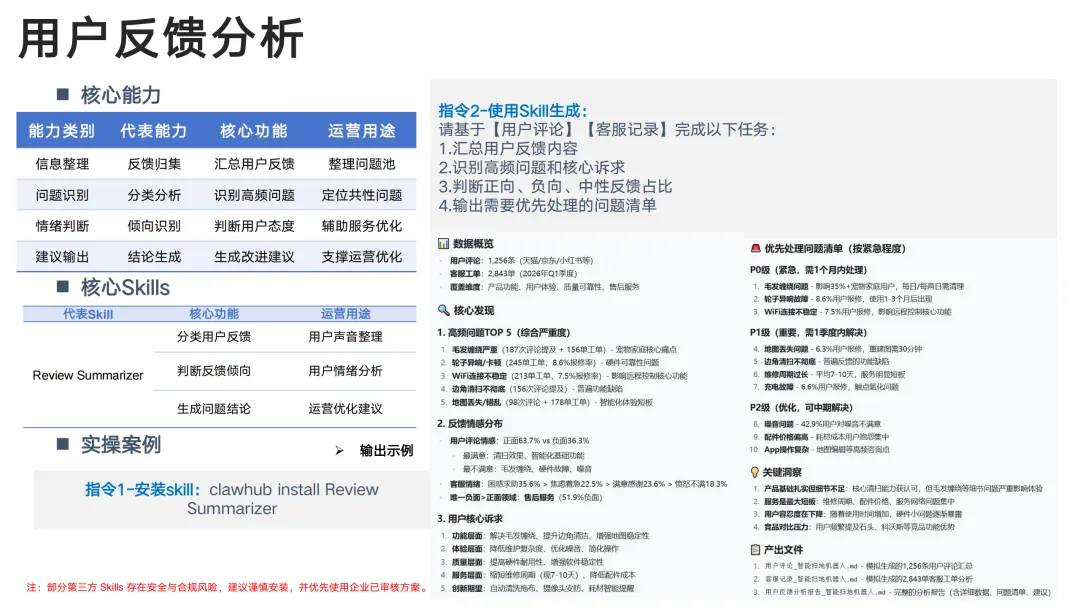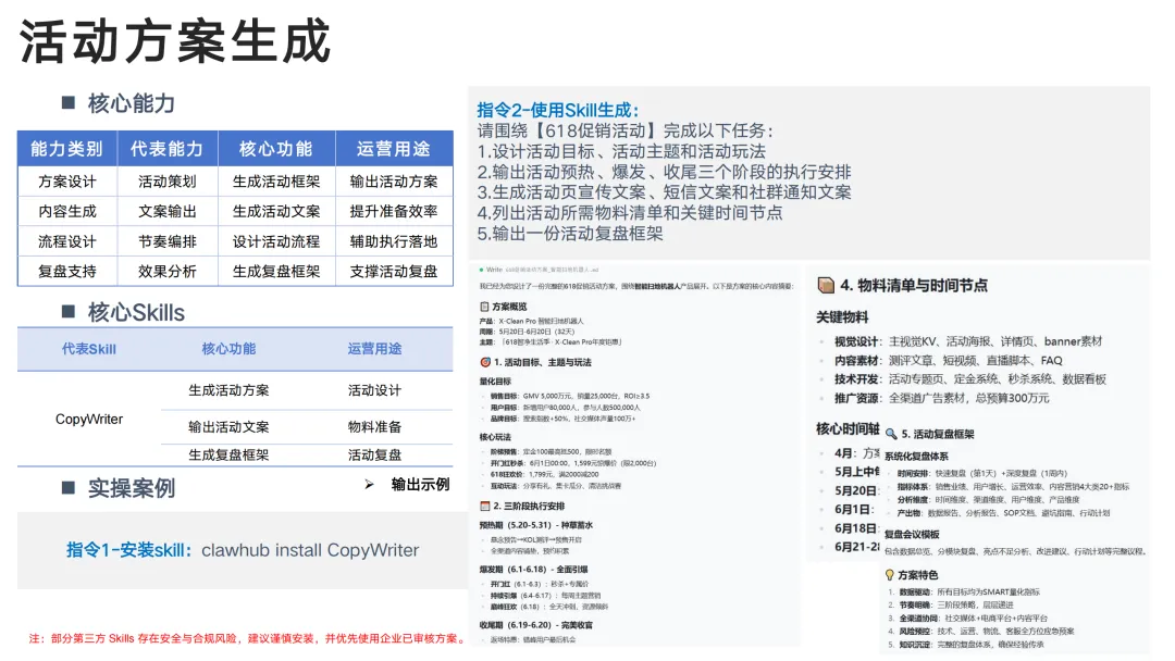 报告指出,OpenClaw 以AI Agent 引擎为核心,突破传统 AI “仅对话” 局限,具备系统级操作、跨应用执行、多任务并行能力,可将自然语言指令转化为实际业务操作。其采用微核 + 插件架构与四层记忆系统,依托 ClawHub 全球最大技能市场(超 1.8 万个技能),覆盖人力、财务、运营、销售、市场、技术、产品、法务八大核心企业场景: