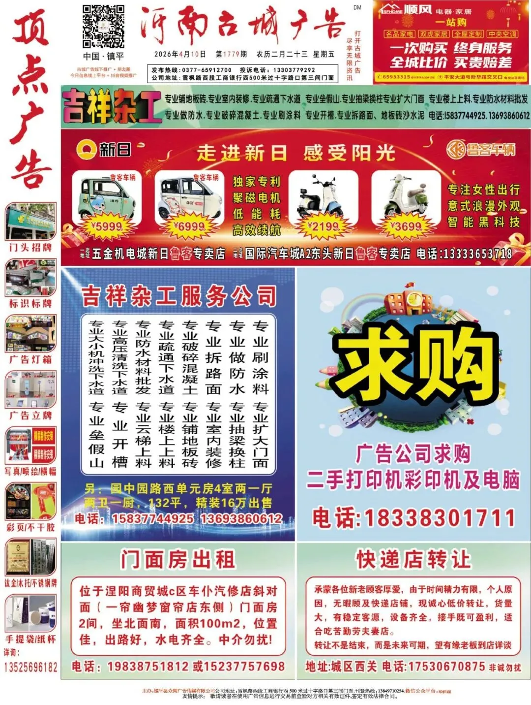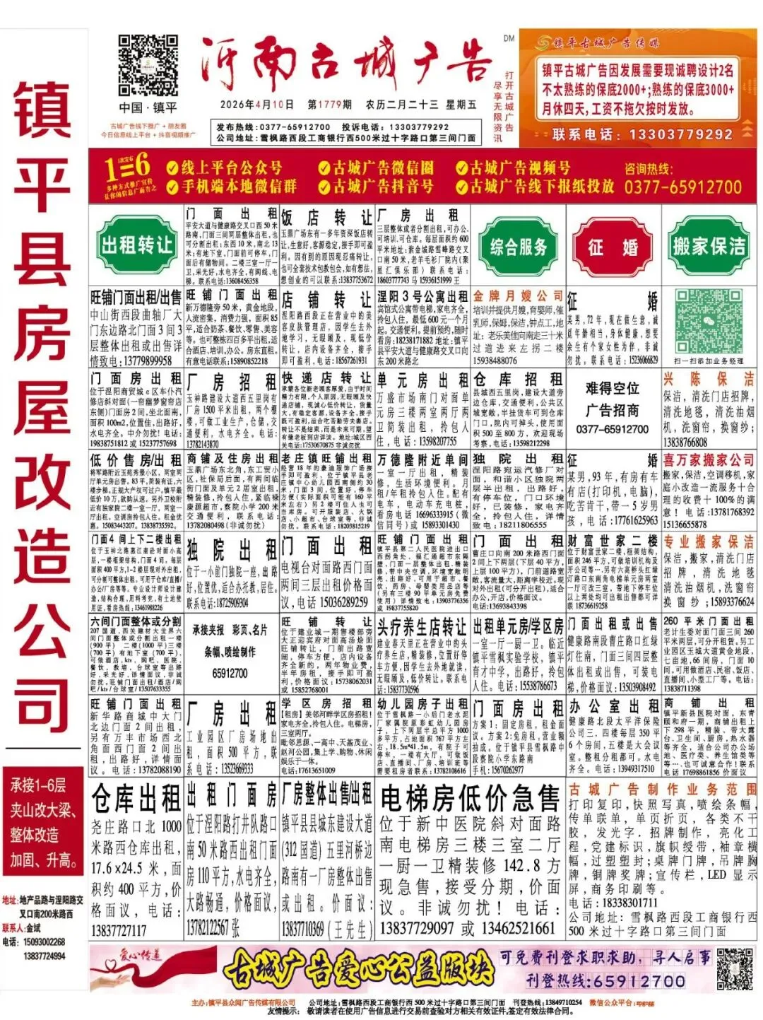 《镇平古城广告》1779期线下报纸电子版