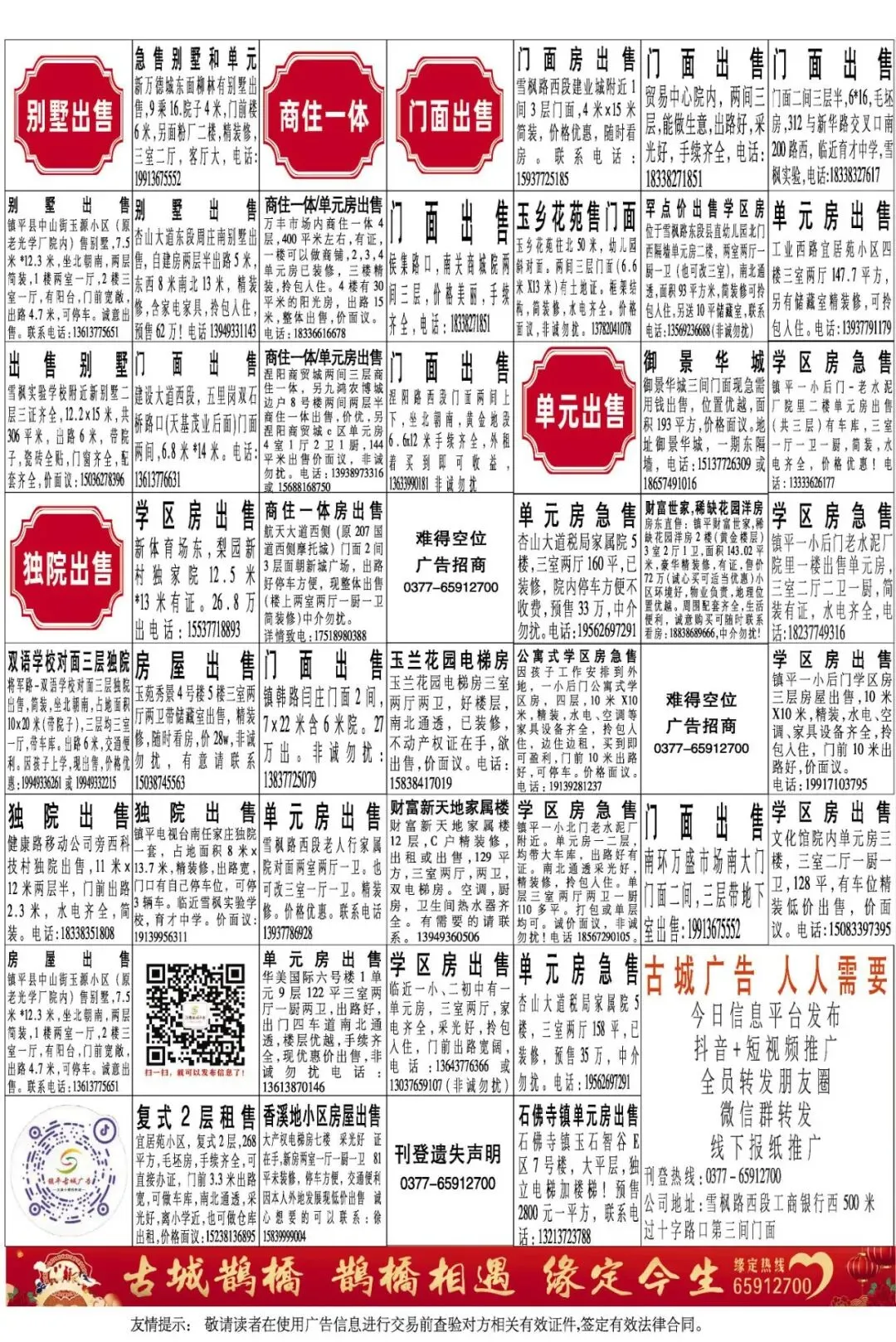 河南古城传媒是你品牌宣传、人才招聘、房屋出售出租、找保姆、找搬家、找钟点工最理想的广告平台!最下方扫码关注公众号,了解更多海量信息
