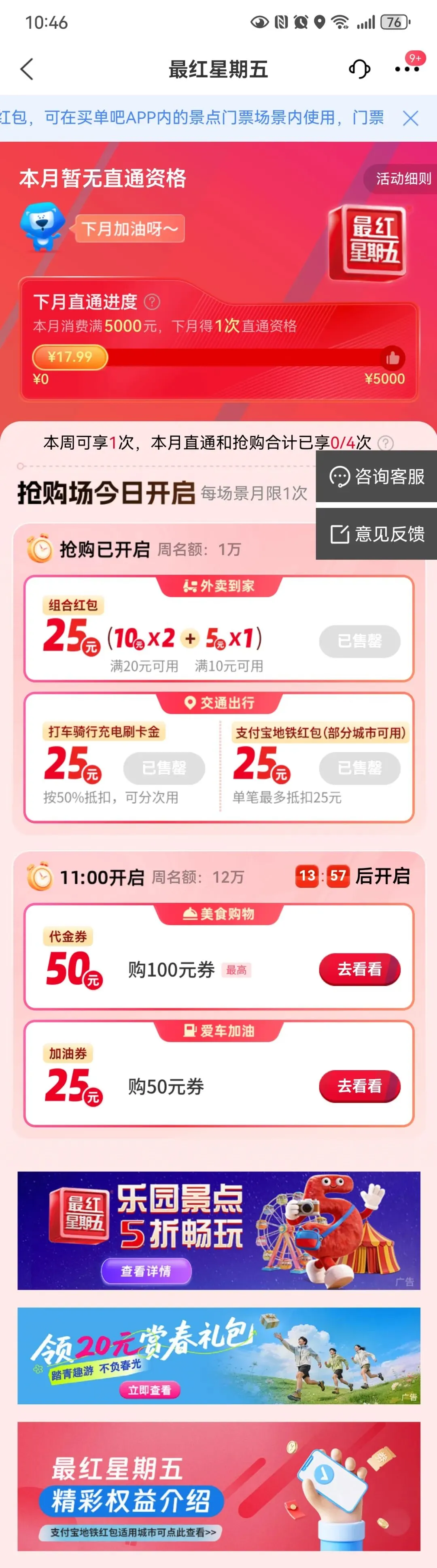 买单吧APP最红星期五抢加油券啦!