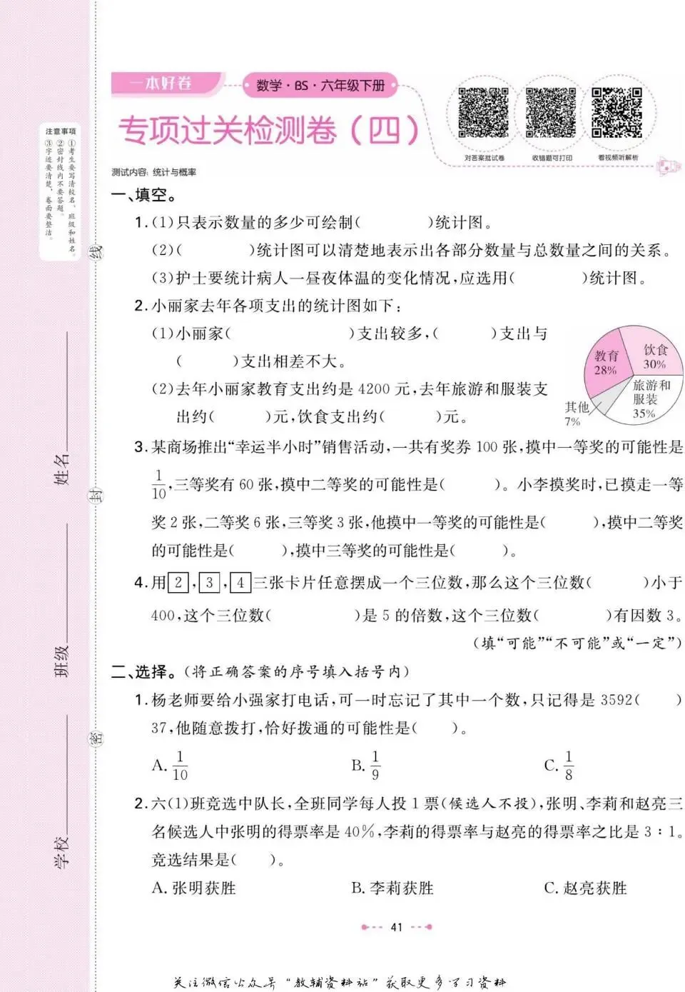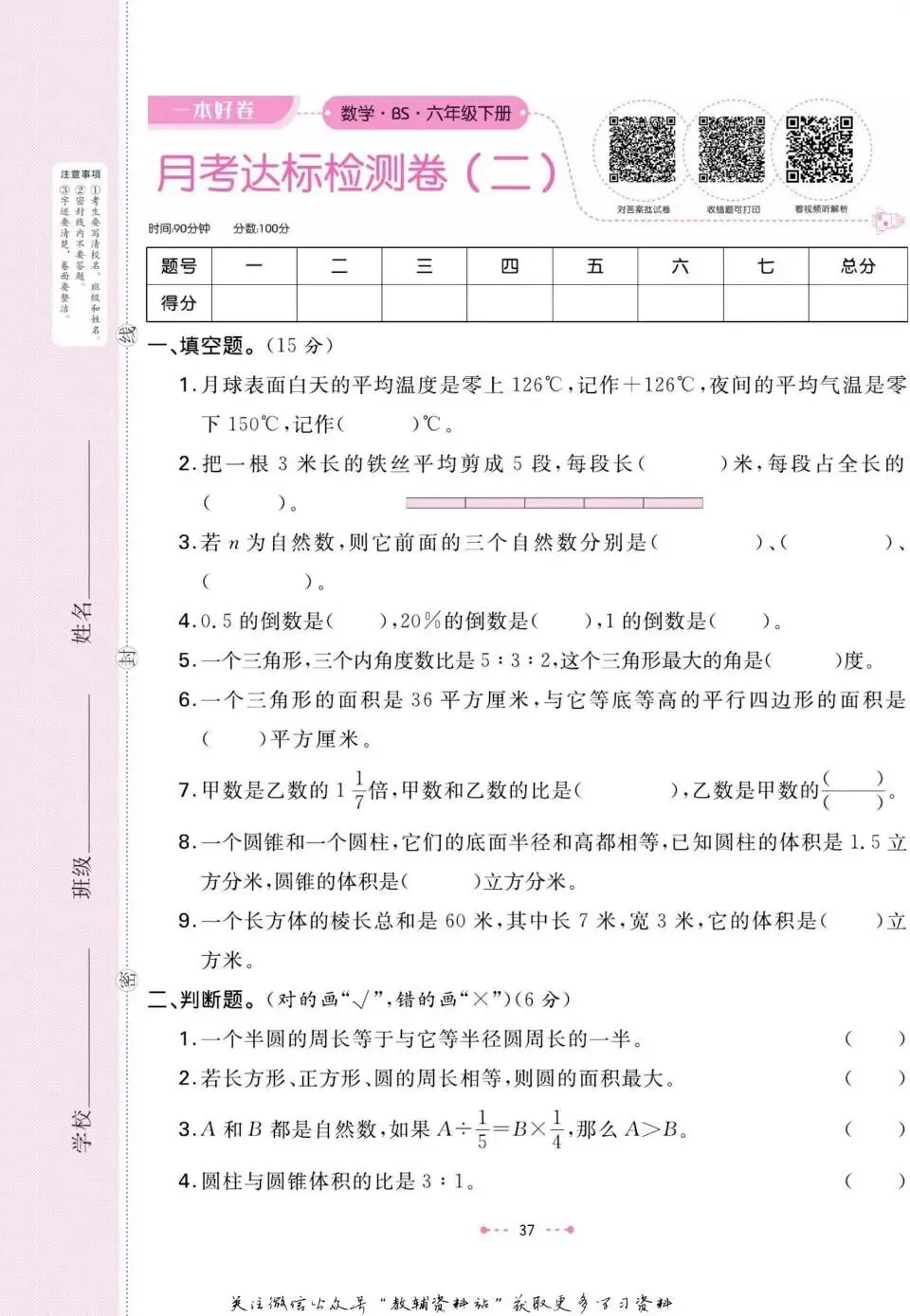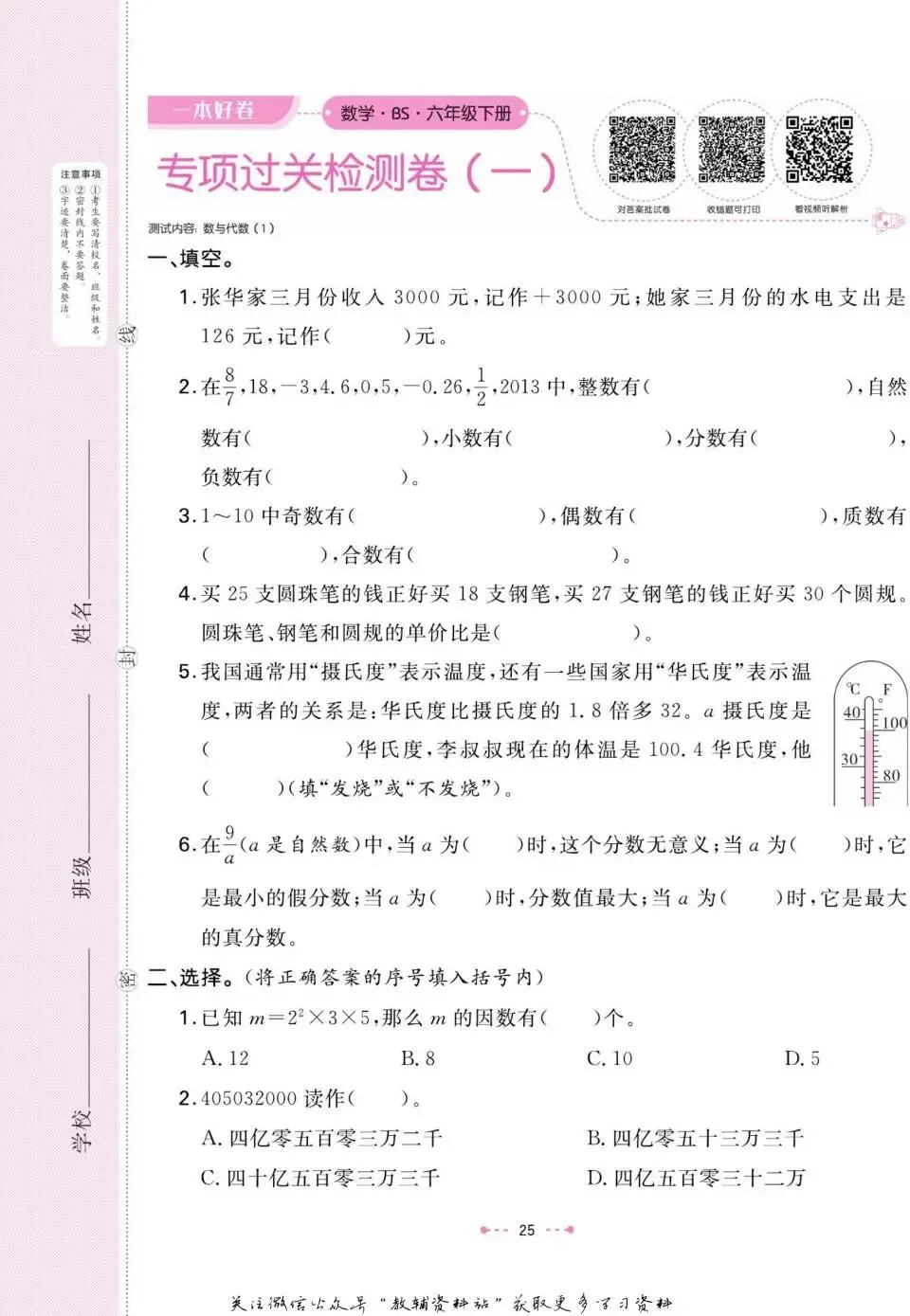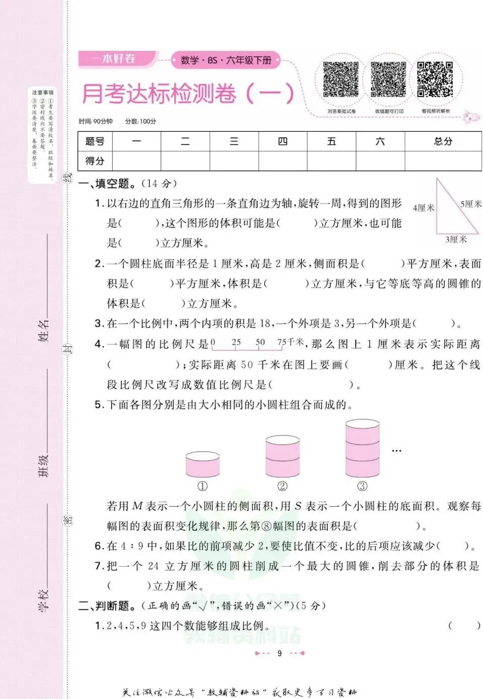 《一本好卷》北师大数学6年级下册丨pdf电子版,可下载打印