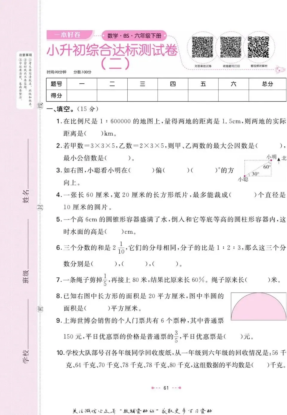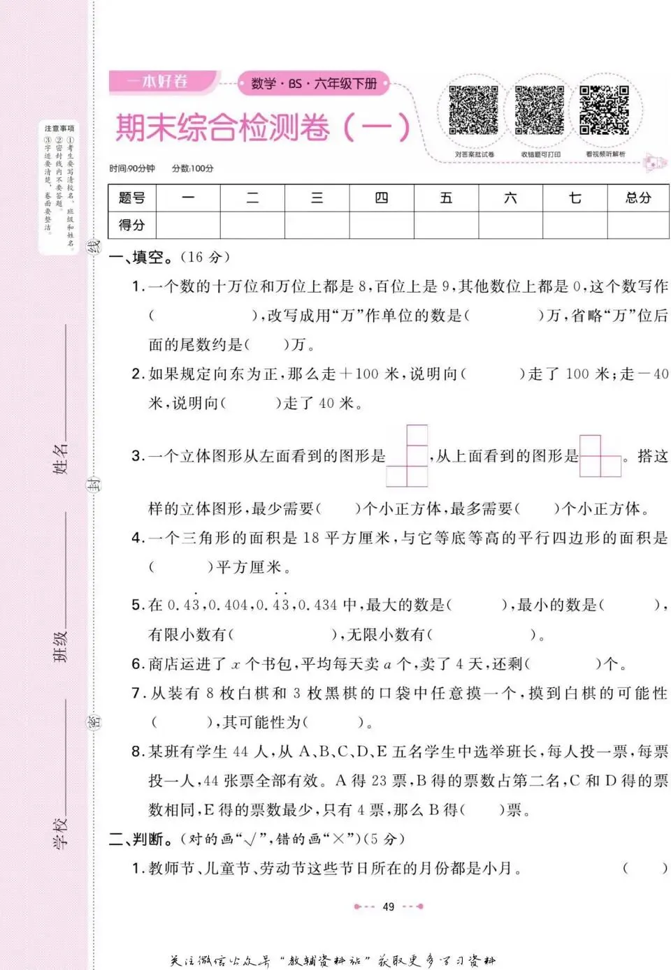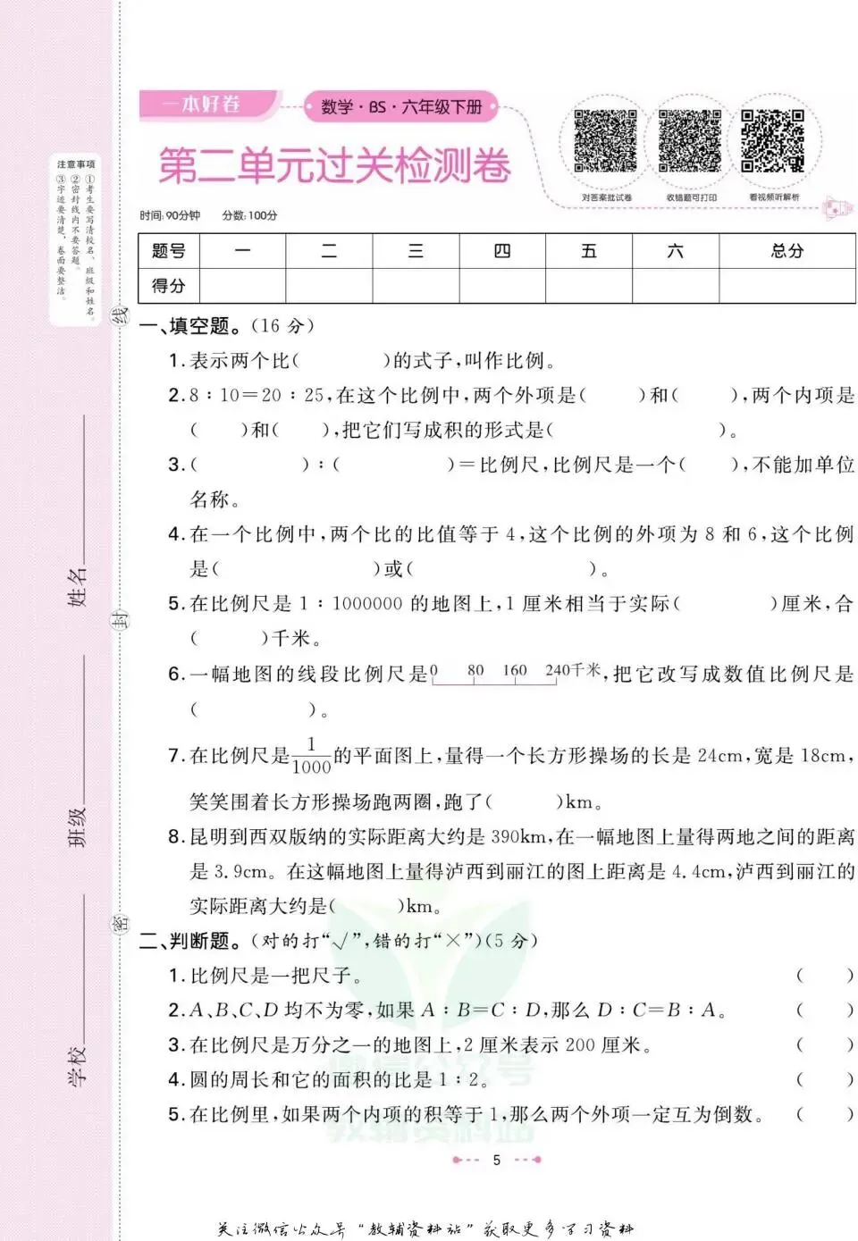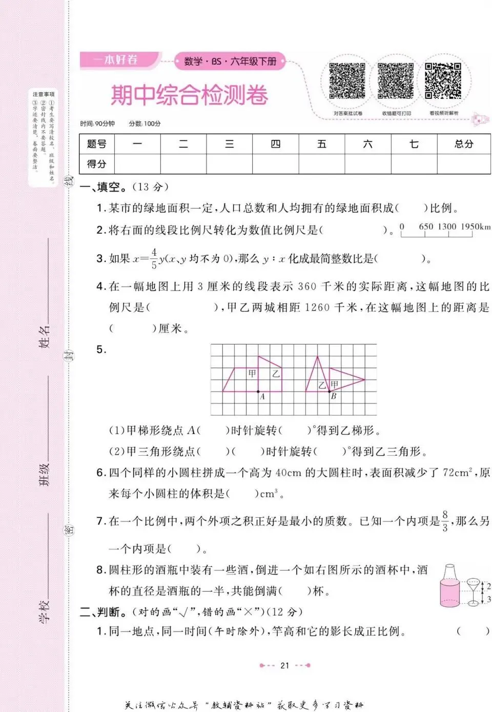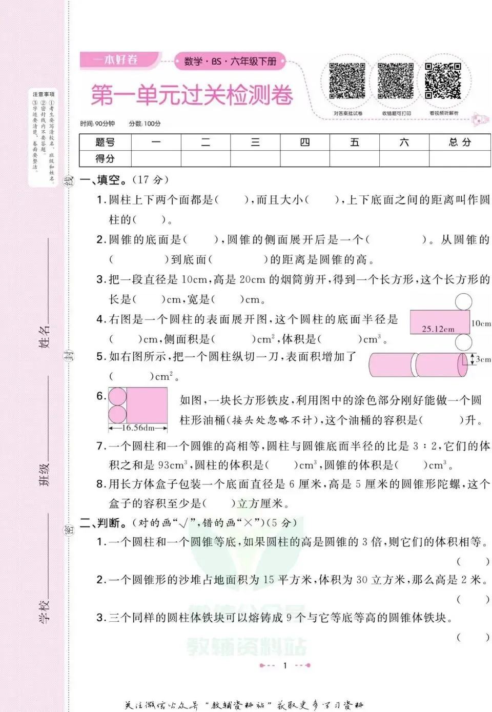 《一本好卷》北师大数学6年级下册丨pdf电子版,可下载打印