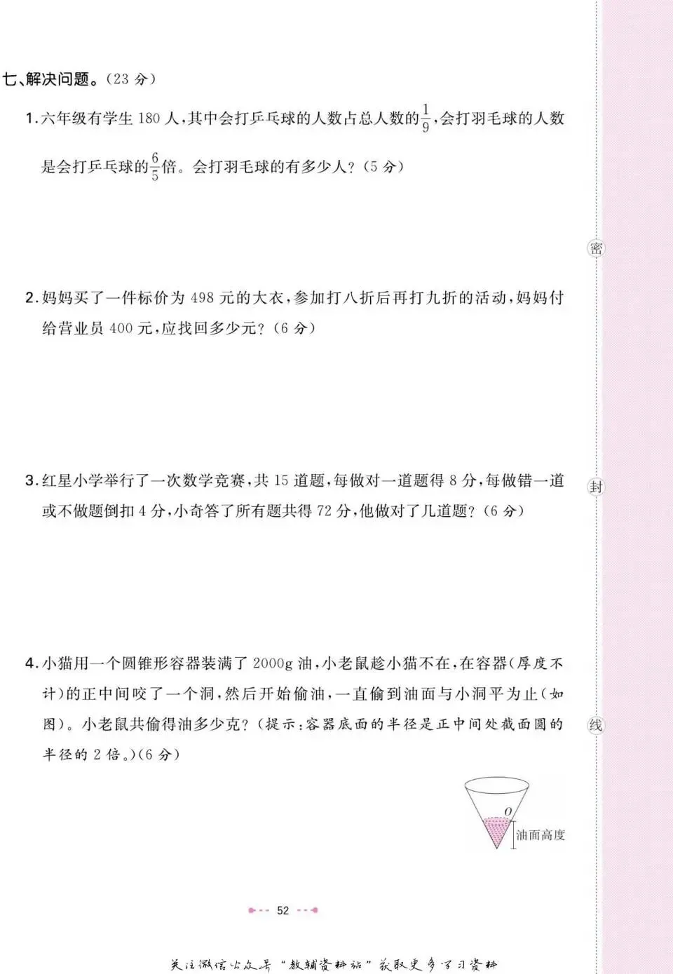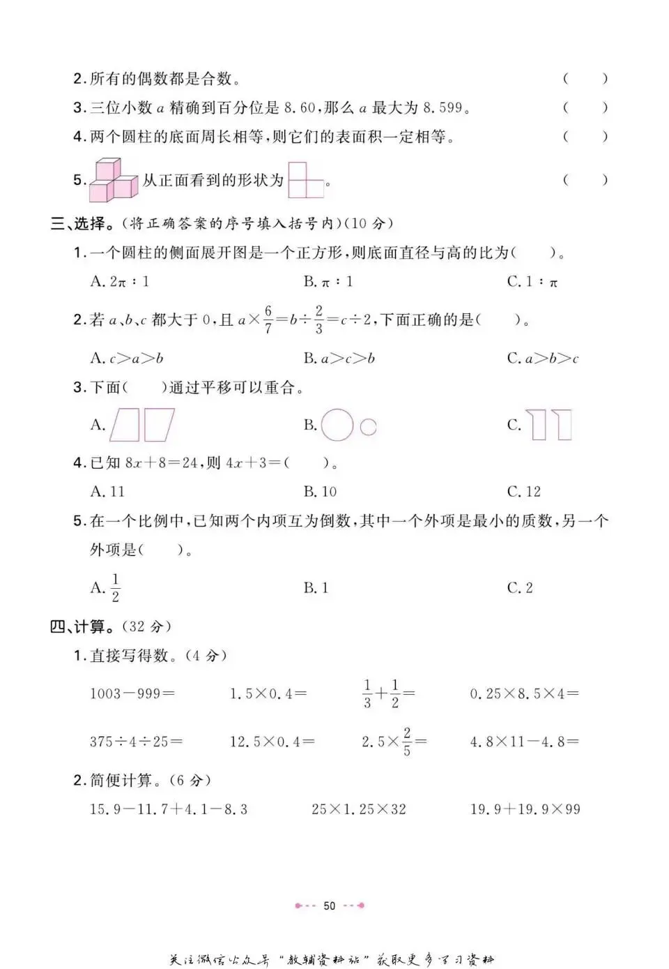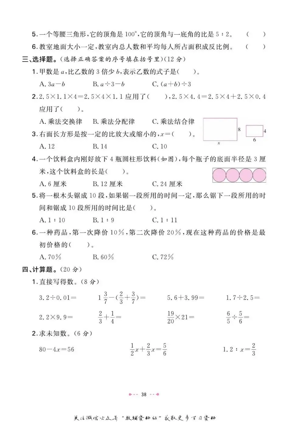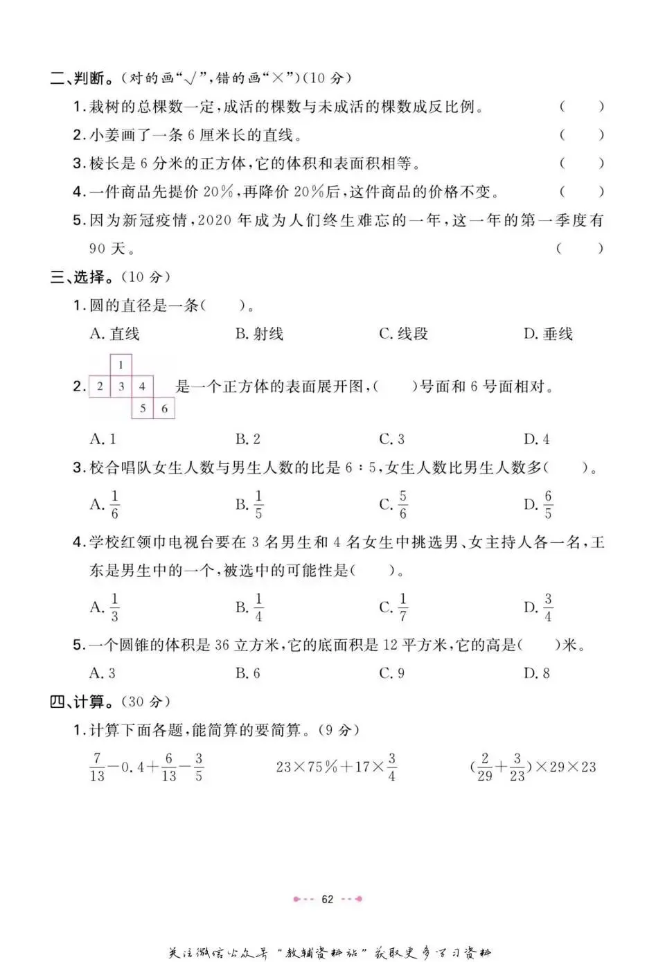 《一本好卷》北师大数学6年级下册丨pdf电子版,可下载打印