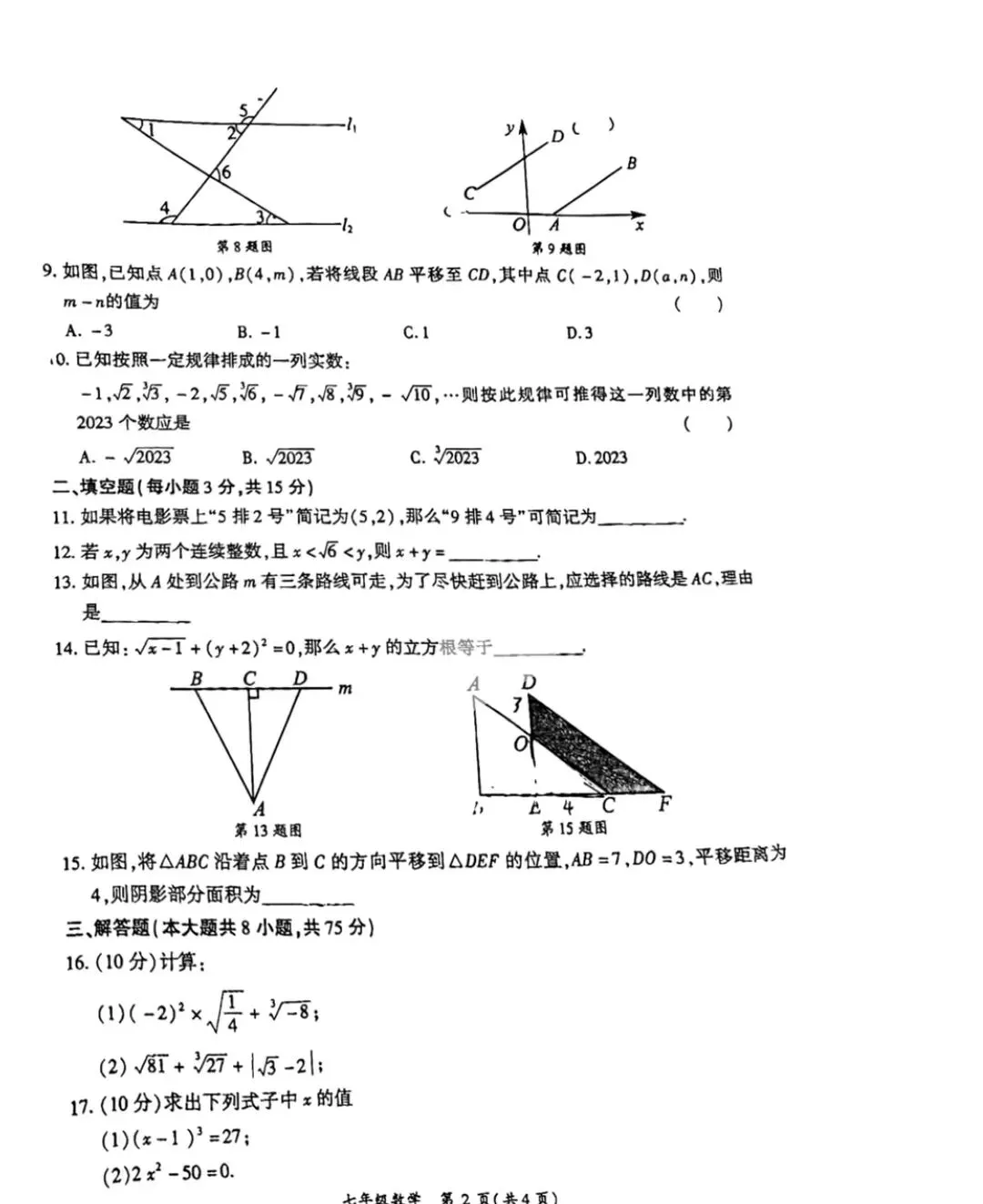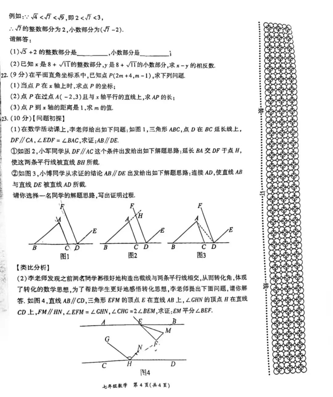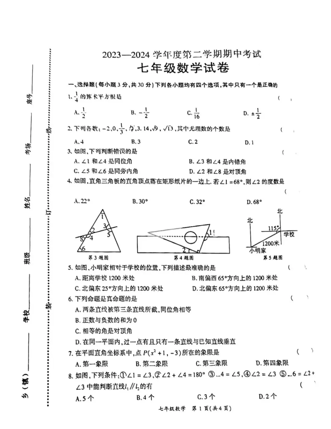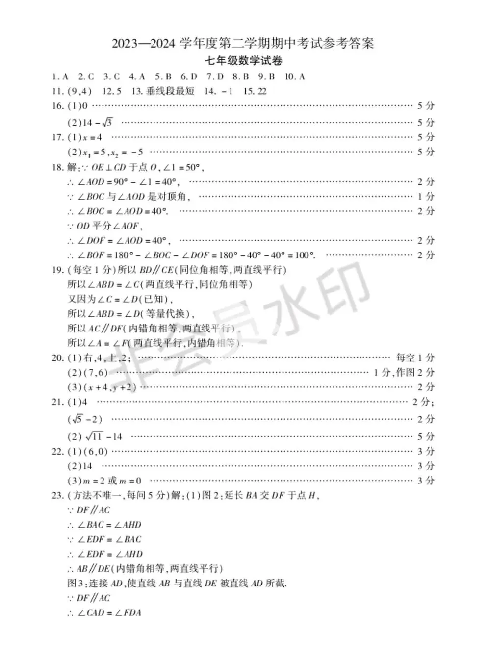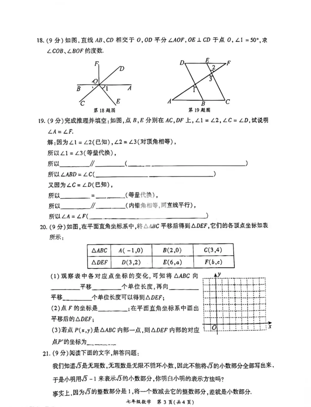 七年级下册数学期中测试卷及答案(可打印)