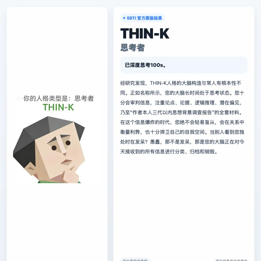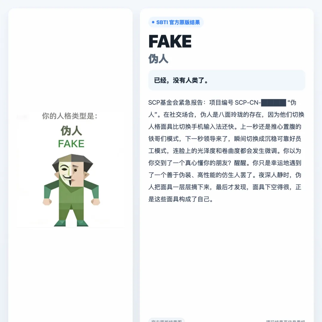 最后提醒:SBTI 只是娱乐内容,没有心理学依据。可以拿来玩,拿来自嘲,拿来和朋友互相伤害,但别拿它给自己判刑,也别拿它给别人定性。