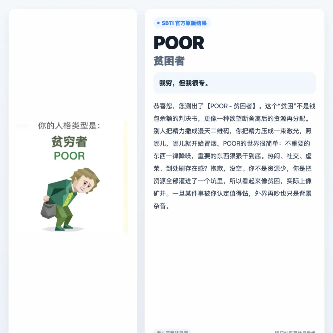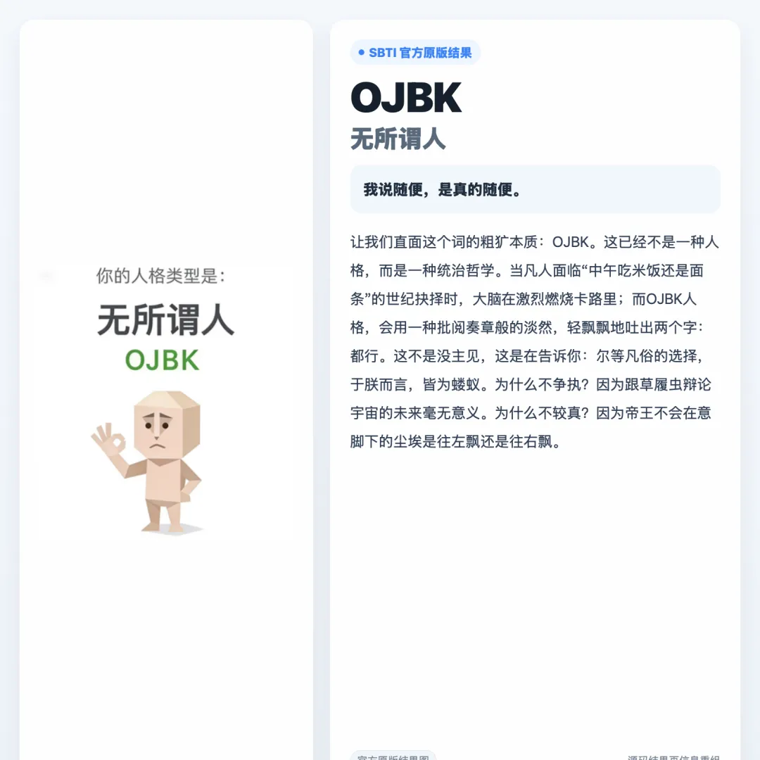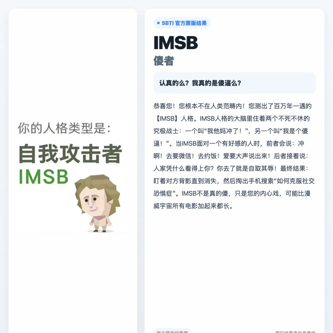 很多人第一次点开 SBTI,都会把它当成 MBTI 的“恶搞版”。