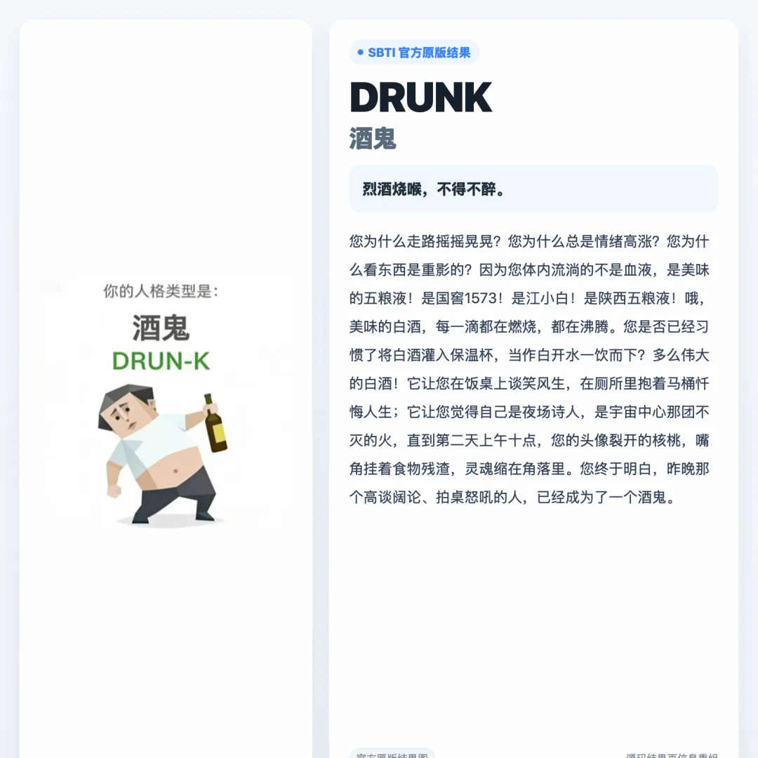 一句话感觉: 这是隐藏结果,一旦触发,说明系统觉得你体内流动的不是血,是白酒。