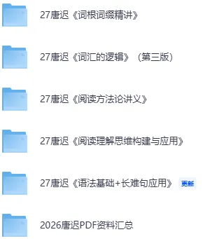 2027唐迟考研英语笔记PDF汇总(词汇、词根词缀、语法、长难句、阅读理解、阅读方法论)