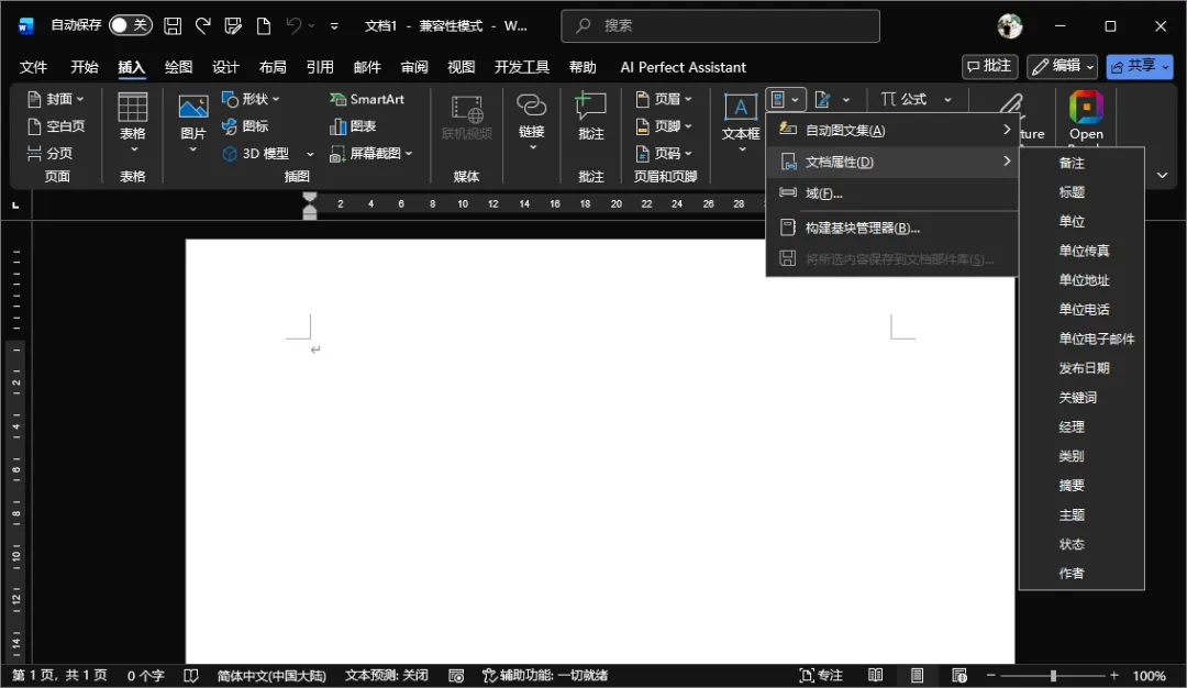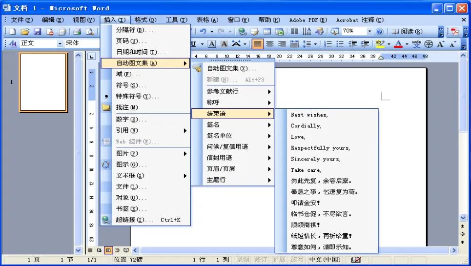 Word的「插入」菜单中还有一个自动图文集。过去的自动图文集是由Word预设内容的,包含了大量商务领域常用的程式化简短内容。现在的自动图文集则是「部件」的形式插入一些文本框,也可以自行设定一些自动图文集。不同于前面提到的一些功能,很多人不知道或不会使用自动图文集的原因,在于长期以来国内的语文教育缺失了应用文尺牍格式的指引,以至于很多敬辞和规范化的格式都失传了。
